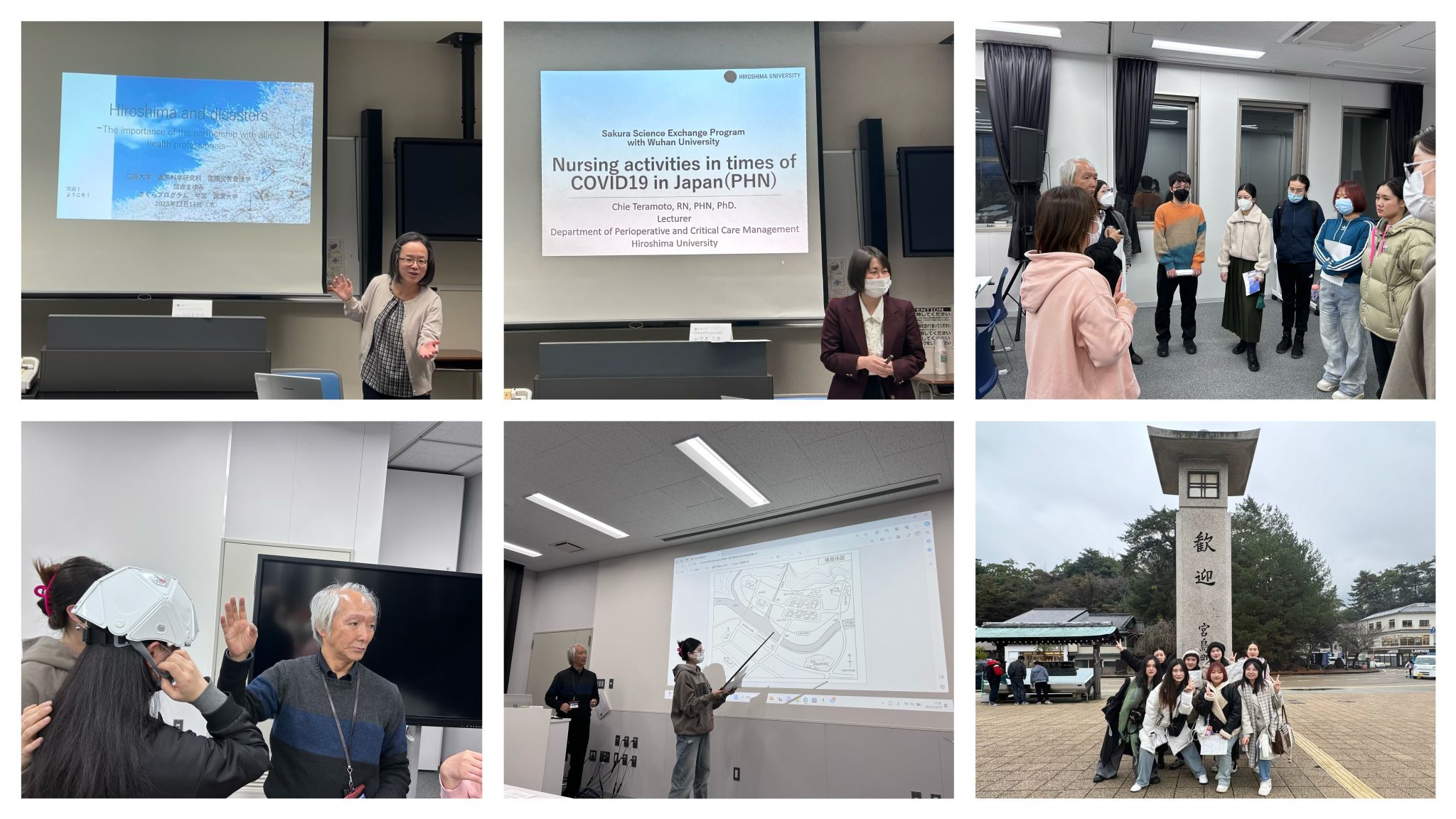 访学期间,研学团队与广岛大学研究科就居家护理、灾难护理、护理医疗人员的养成及教育制度等方面开展了学术交流与合作探讨。广岛大学中谷久惠教授、上田美香老师、士芹泽洋帆老师等为研学团队详细讲解了日本居家护理的变迁与发展、医院出院支援、预防活动与社区综合支援中心、日本访问护理制度和日本居家护理中的理学疗法。