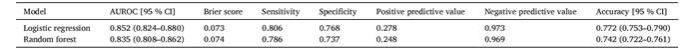 研究结果显示,青少年NSSI的10个危险因素为:青少年抑郁、青少年失眠、家庭冲突、父母抑郁、性别、留守经历和父母失眠、父母心理健康知识水平、家族精神病史和家庭成员死亡经历;4个保护因素为:产生心理问题时向父母求助 、母亲受教育程度(低于高中)、产生心理问题时向家庭中其他人求助和良好家庭功能。逻辑回归和随机森林模型性能表现均较好。通过以上结果我们认为,要预防自伤行为应该进一步建设更便捷有效的心理健康服务途径,注重提升家庭功能,建立支持性和充满温暖的家庭环境,着重解决父母的心理问题及其影响因素,树立家长对孩子自伤行为表现及精神疾病的正确认识、降低家长病耻感,加强有效育儿方式的实施。