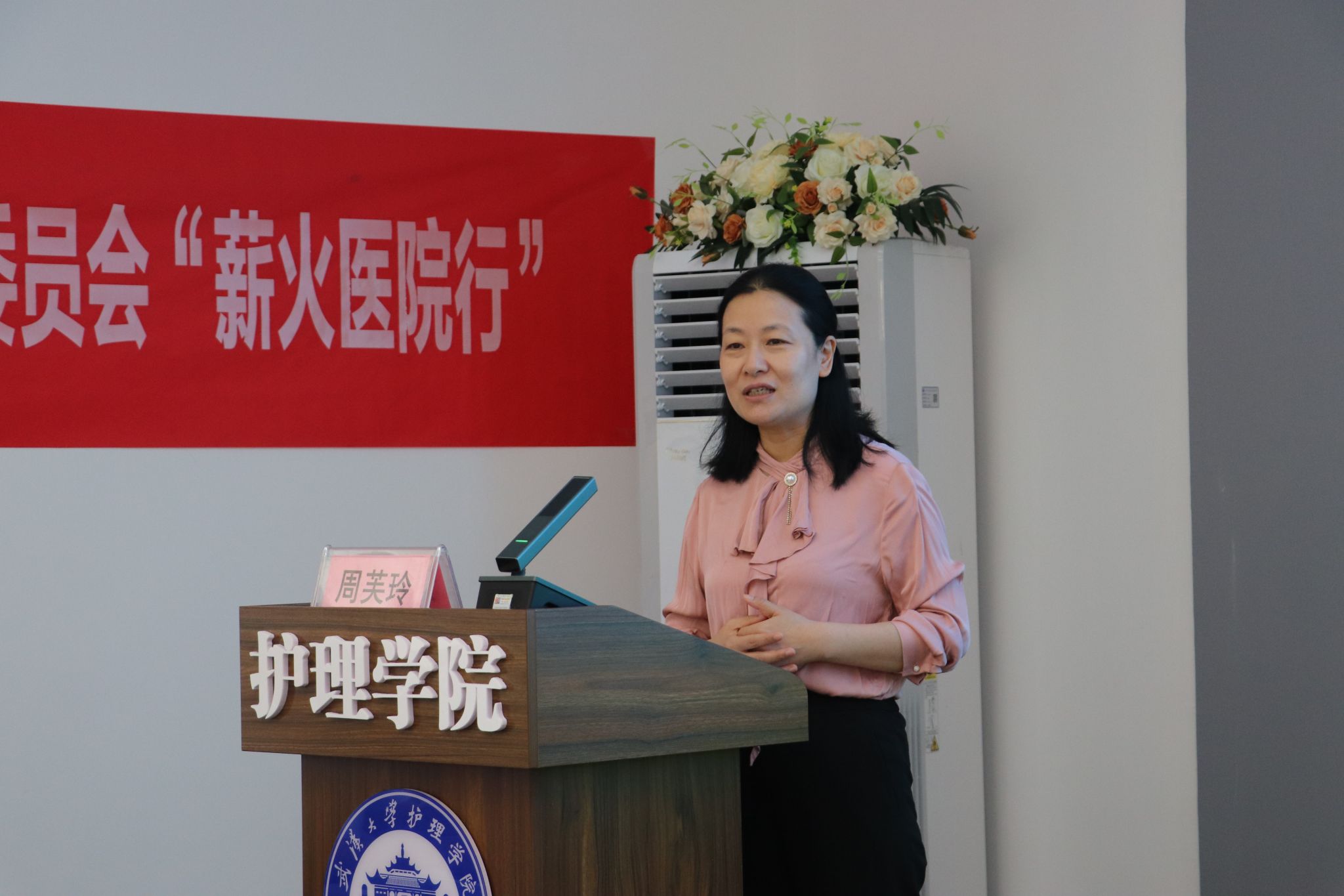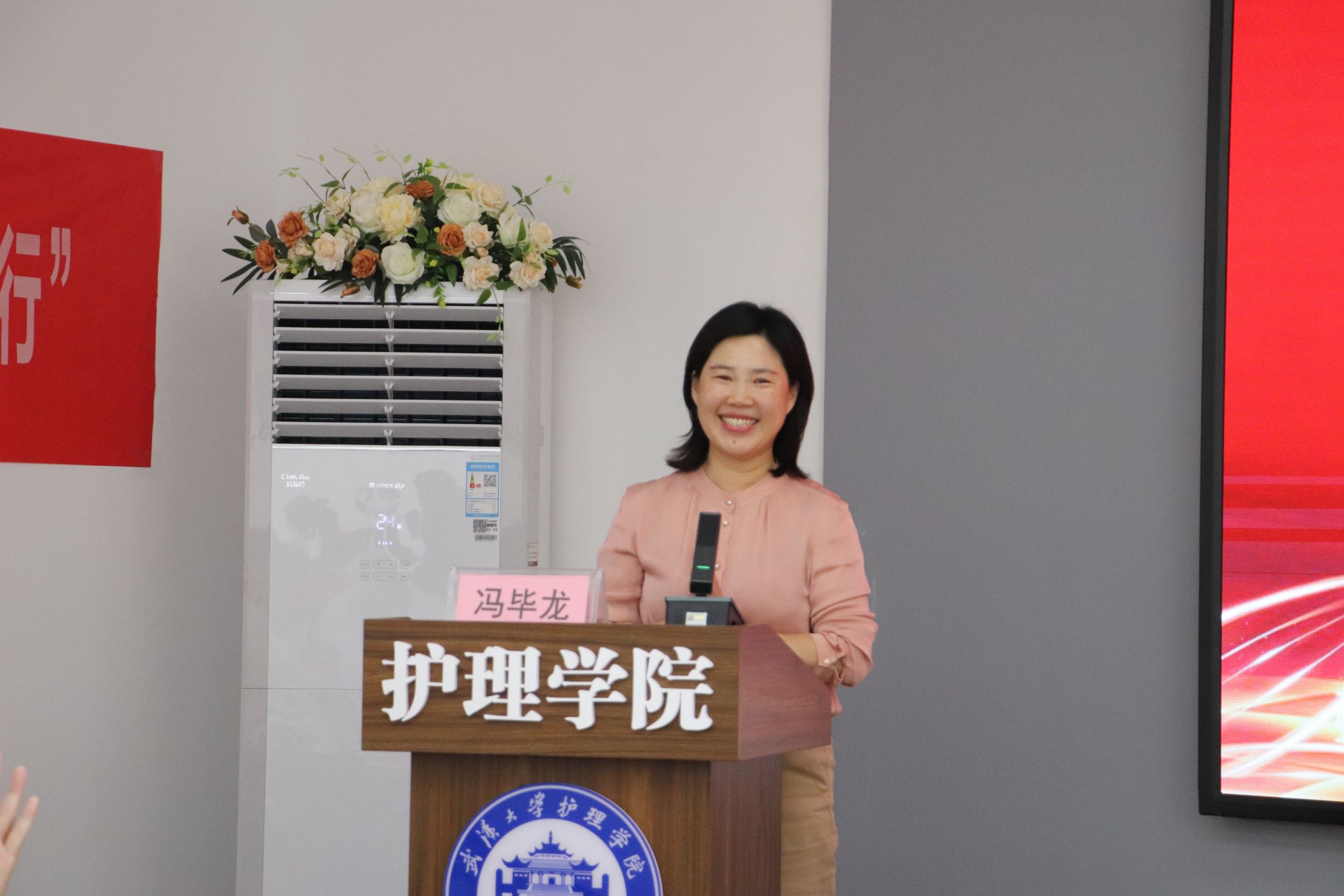 中南医院护理部主任冯毕龙先后致辞。周芙玲对与会嘉宾表示热烈欢迎和衷心感谢,她充分肯定了男护士在护理事业高质量发展中的重要作用,并对学院男护生的未来发展寄予高度期望。冯毕龙结合临床医院工作实际,表达了对男护士群体的高度认可,并对参会男护生们提出了宝贵的建议和表达了美好的祝愿。