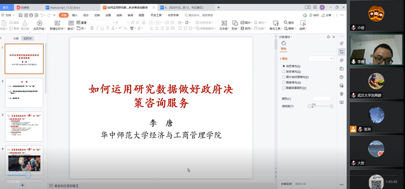 珞珈护理讲坛:华中师范大学李唐副教授分享如何运用研究数据做好政府决策咨询服务