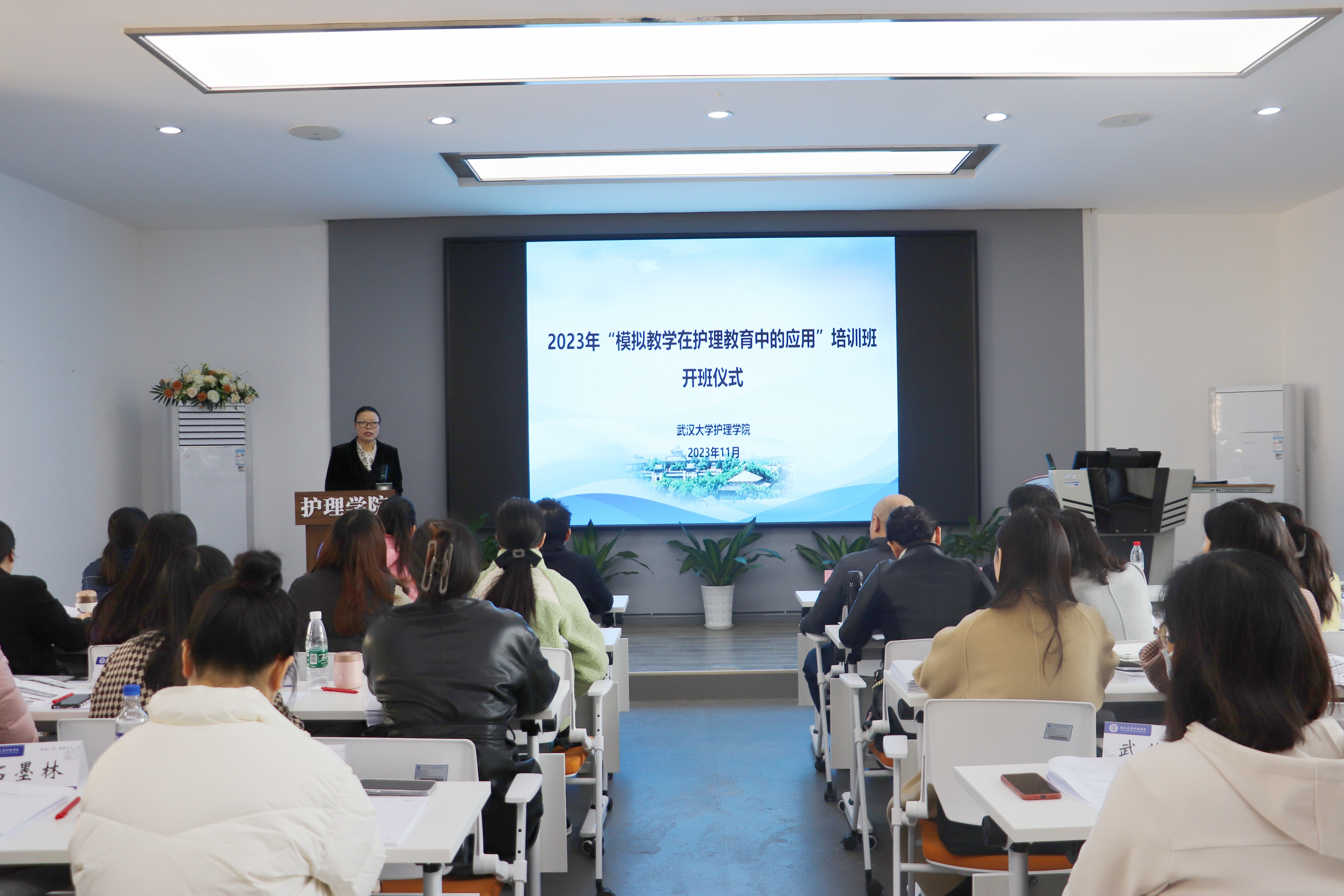 在2601报告厅举行2023年“模拟教学在护理教育中的应用”培训开班仪式,学院党委书记赵昊鲁、党委副书记罗睿、副院长杨冰香出席此次开班仪式。开班仪式由实验教学中心副主任蔡春凤主持。