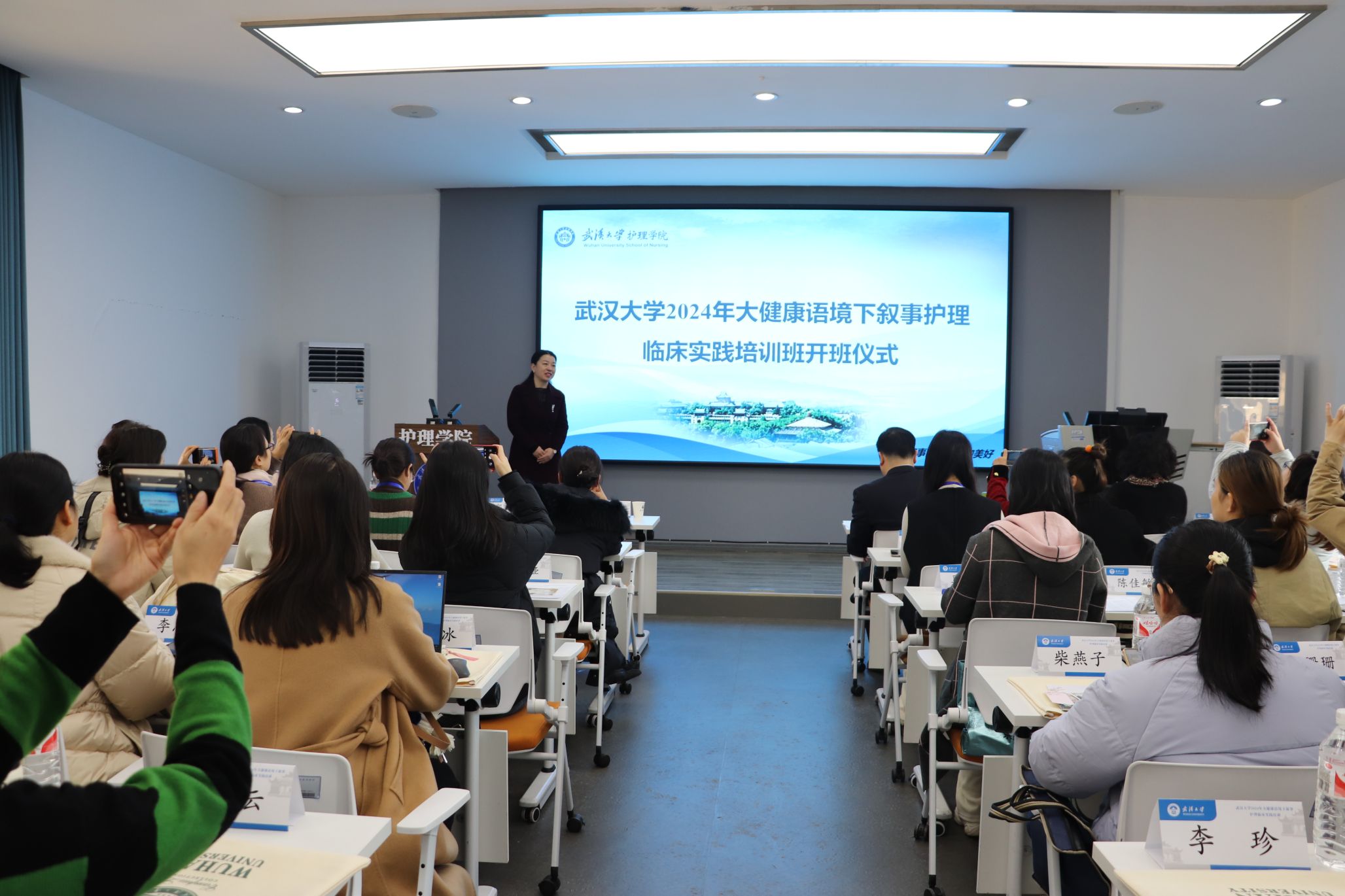 中南医院血液科副主任护师李建芳、肺部肿瘤放化疗科主管护师桂玲莉、武汉市第三医院主管护师吴俊、学院副教授孟宪梅出席了开班仪式。开班仪式由李建芳主持。