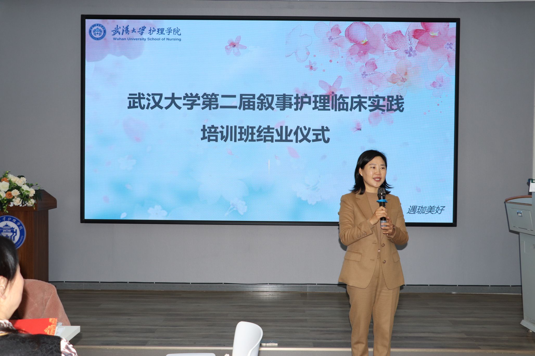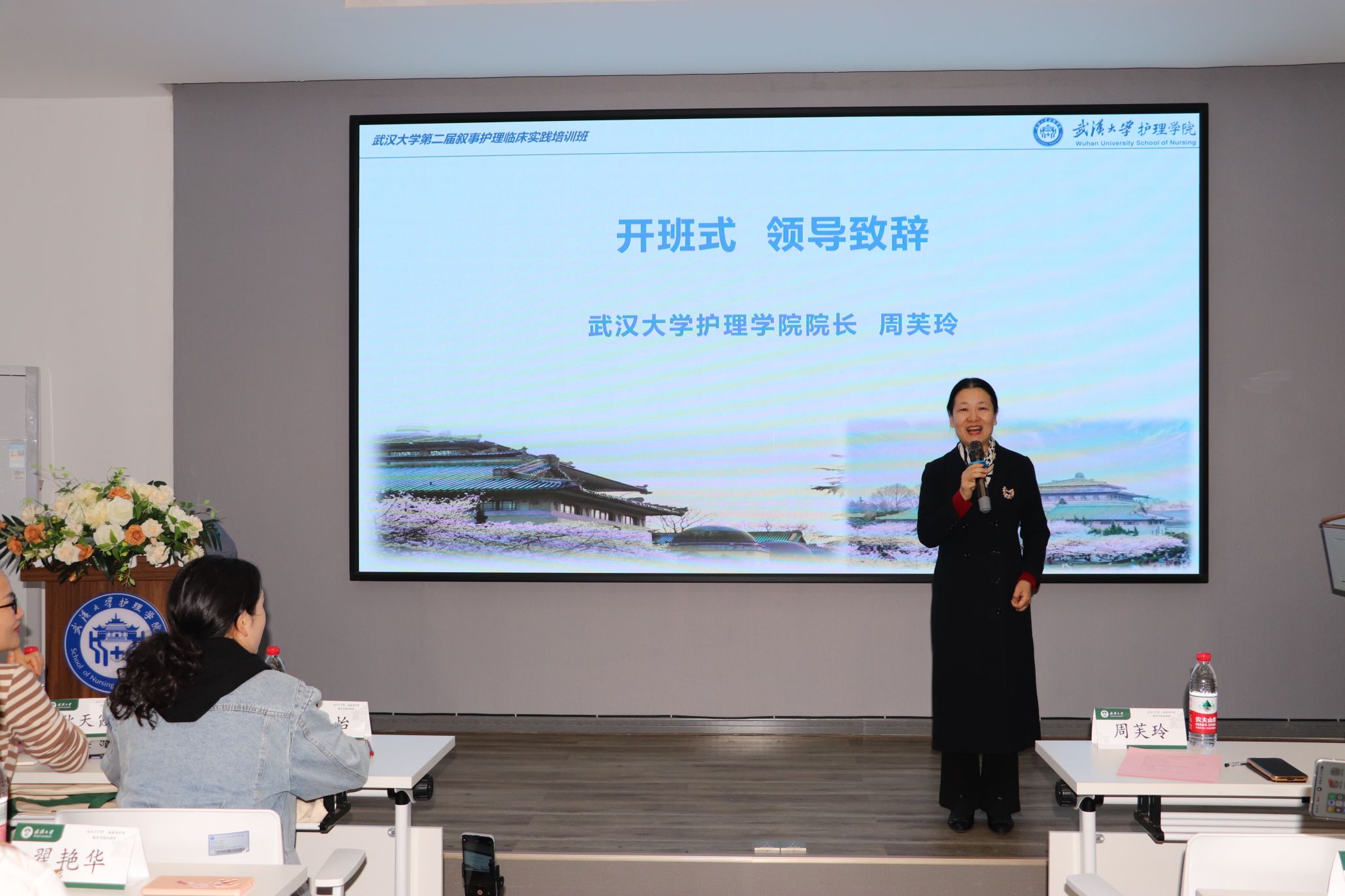 周芙玲在开班仪式上致辞,并代表学院对学员们的到来表示热烈欢迎。她提到了南丁格尔的“护理不只是最精细的技术,而是最精细的艺术”,希望学员们通过此次培训逐步提高自身的叙事素养,让护理工作更加贴近患者、贴近临床和贴近社会,进一步增强患者的获得感、幸福感和安全感。