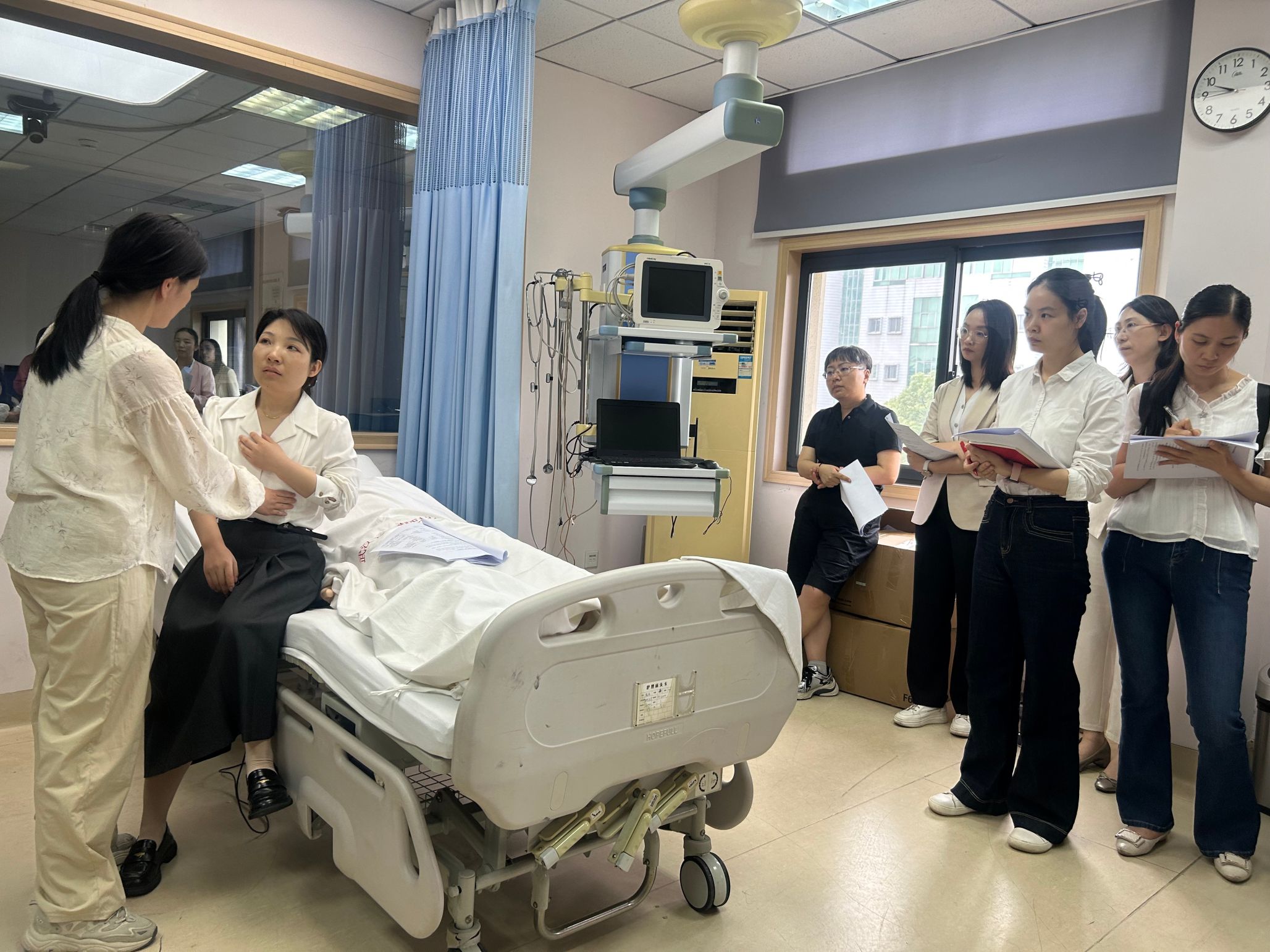 人民医院肝胆外科护士长张艳冰带领学员进行模拟教学课程演练,并分享了在模拟教学方面的成果;17c