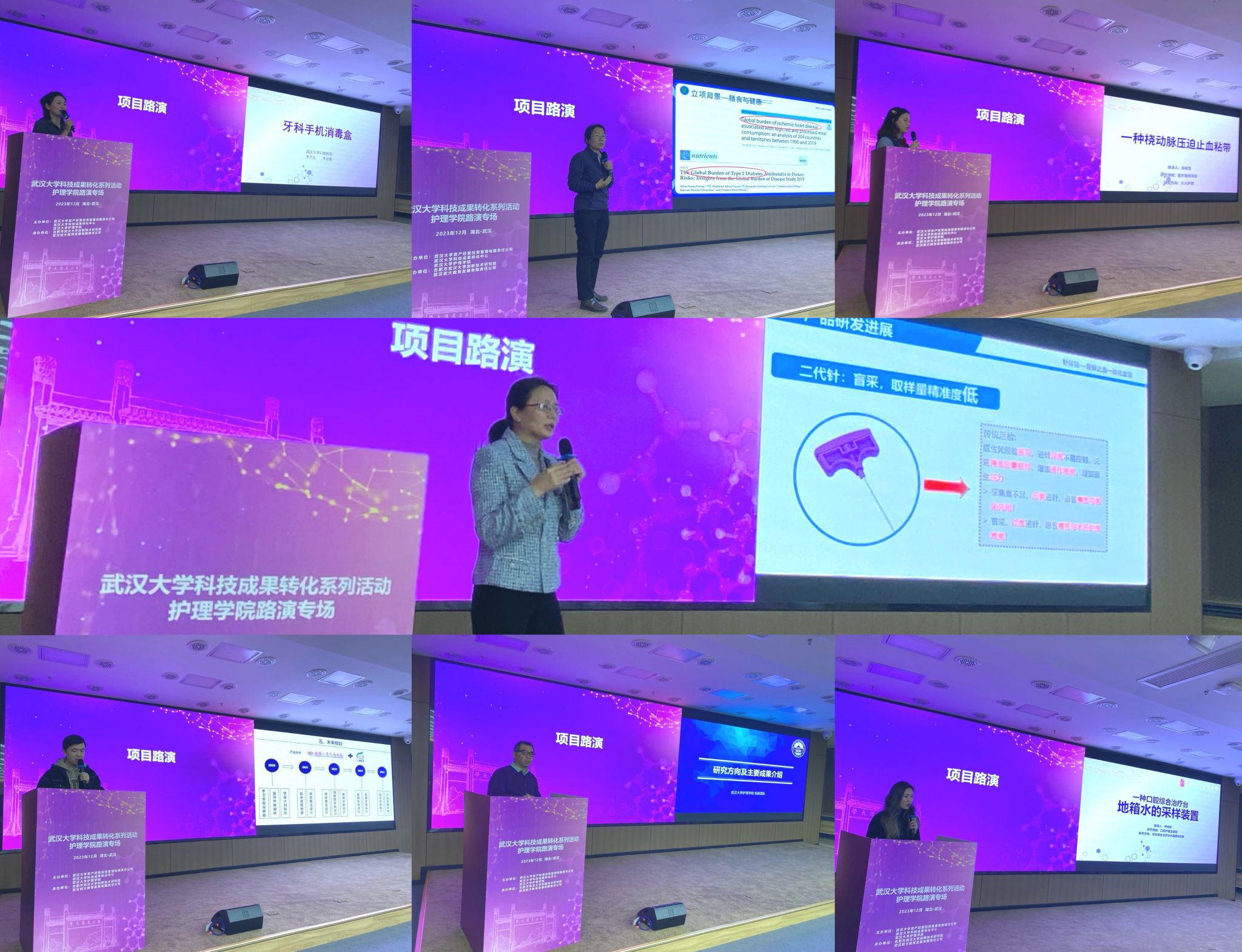 孟宪梅、周奕华、王素青、钱俊,人民医院胡金凤,中南医院肖敏雪、何文斌,口腔医院李巧文、尹婷婷等多位老师就“多学科合作骨穿止血一体化套针研究进展”、“基于CDs的印刷纸基微流控芯片及其在居家护理中的应用”、“脆弱群体的饮食质量管理”、“电渗透给药产品;全方位智能数字化教育产品;智能马桶;导电发热材料”、“让锻炼更舒适有效一种用于关节护理的活动支架”、“一种桡动脉压迫止血粘带”、“基于机器视觉与物联网的手卫生智能监测系统”、“牙科手机消毒盒”、“一种口腔综合治疗台地箱水的采样装置”等项目进行了推荐和路演,并吸引了多位医工交互投资机构和产业方负责人的关注,同时对推介成果的项目及市场化可行性进行了深入的点评。