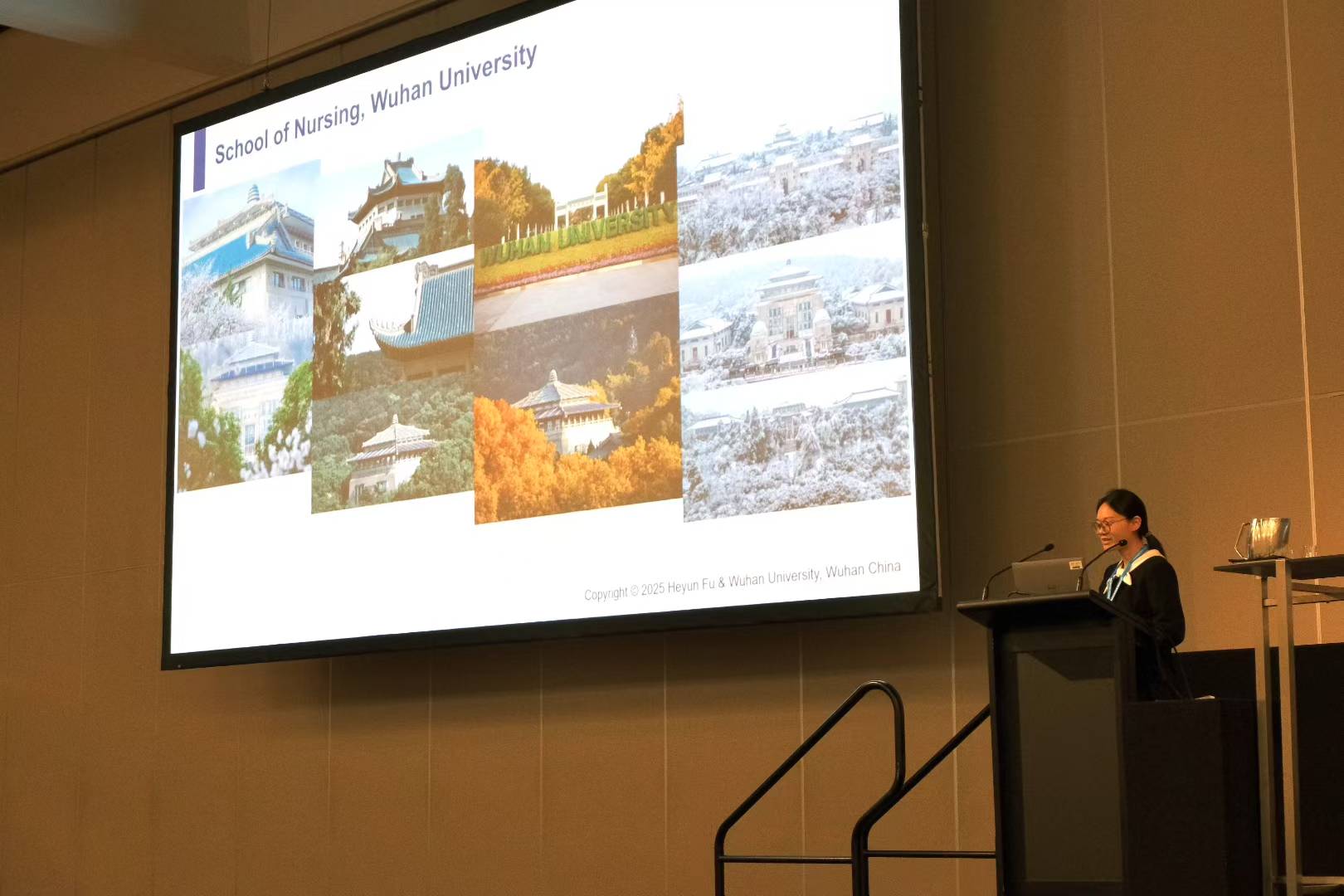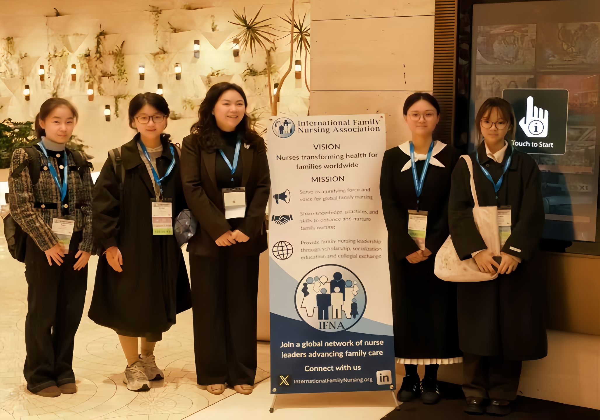 李梦娜同学展示了其研究《The Mediating Role of Family Function in the lmpact of Adolescents' Unhealthy Behaviors on NSSI, Anxiety and Depression》,该研究基于对中部地区一万多名青少年的调查数据,探讨了家庭功能在青少年不健康生活方式与心理健康问题之间的中介作用,为从家庭干预角度出发、改善青少年心理健康提供了有力的实证支持。会议期间,他们积极与来自世界各地的护理专家、学者以及临床护理人员展开深入交流,与多位国际同行就研究方法与实践经验进行了探讨。此次跨国学术互动不仅拓宽了学术视野,也为今后在家庭护理领域的国际合作与课题开展奠定了坚实基础。