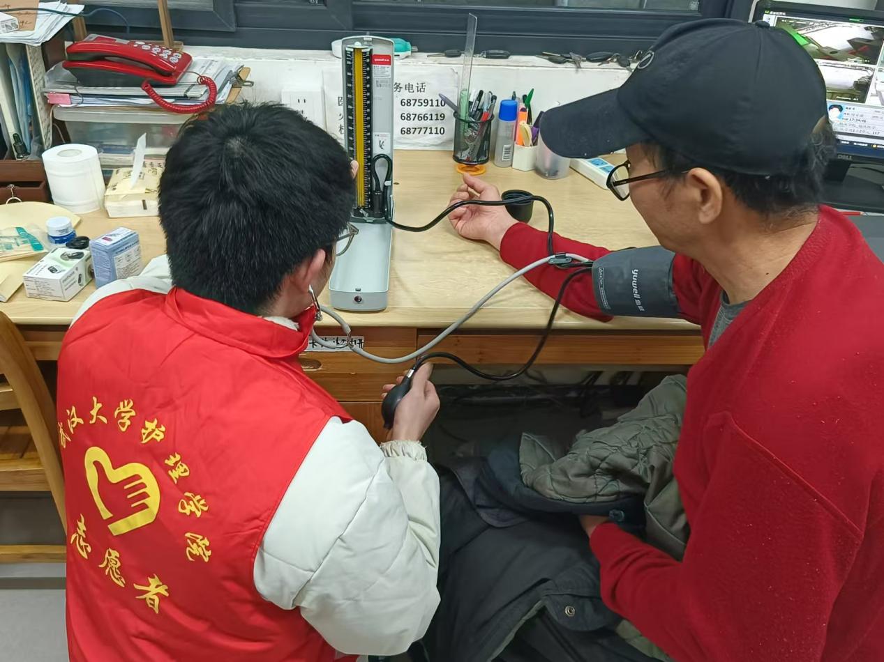 活动期间,学生党员们充分发挥专业优势,为宿管叔叔阿姨们测量血压、脉搏、血糖。在测量过程中,他们为叔叔阿姨们细心地讲解各项指标的含义和日常的健康注意事项,并致以新春最美好的祝福。