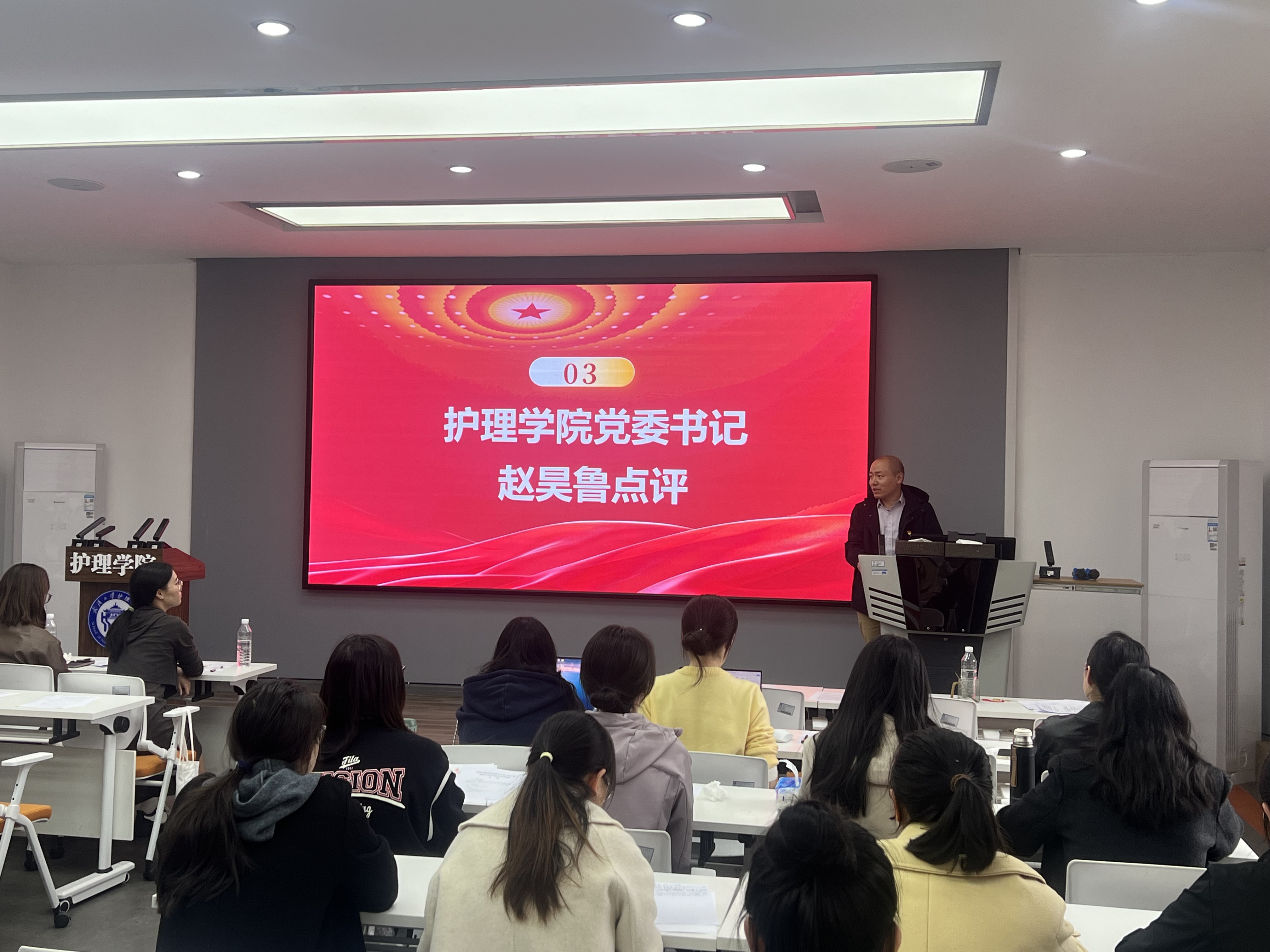 在组织生活会和民主评议党员环节,支部首先通报了上年度组织生活会整改措施的落实情况。随后,全体党员对照党章党规,结合自身思想、工作和作风实际,严肃开展批评与自我批评,深刻查摆问题并提出改进方向。赵昊鲁在总结发言中指出,全体党员要以此次评议为契机,持续加强理论武装,狠抓整改落实,切实将组织生活会的成效转化为推动学院高质量发展的实际行动。