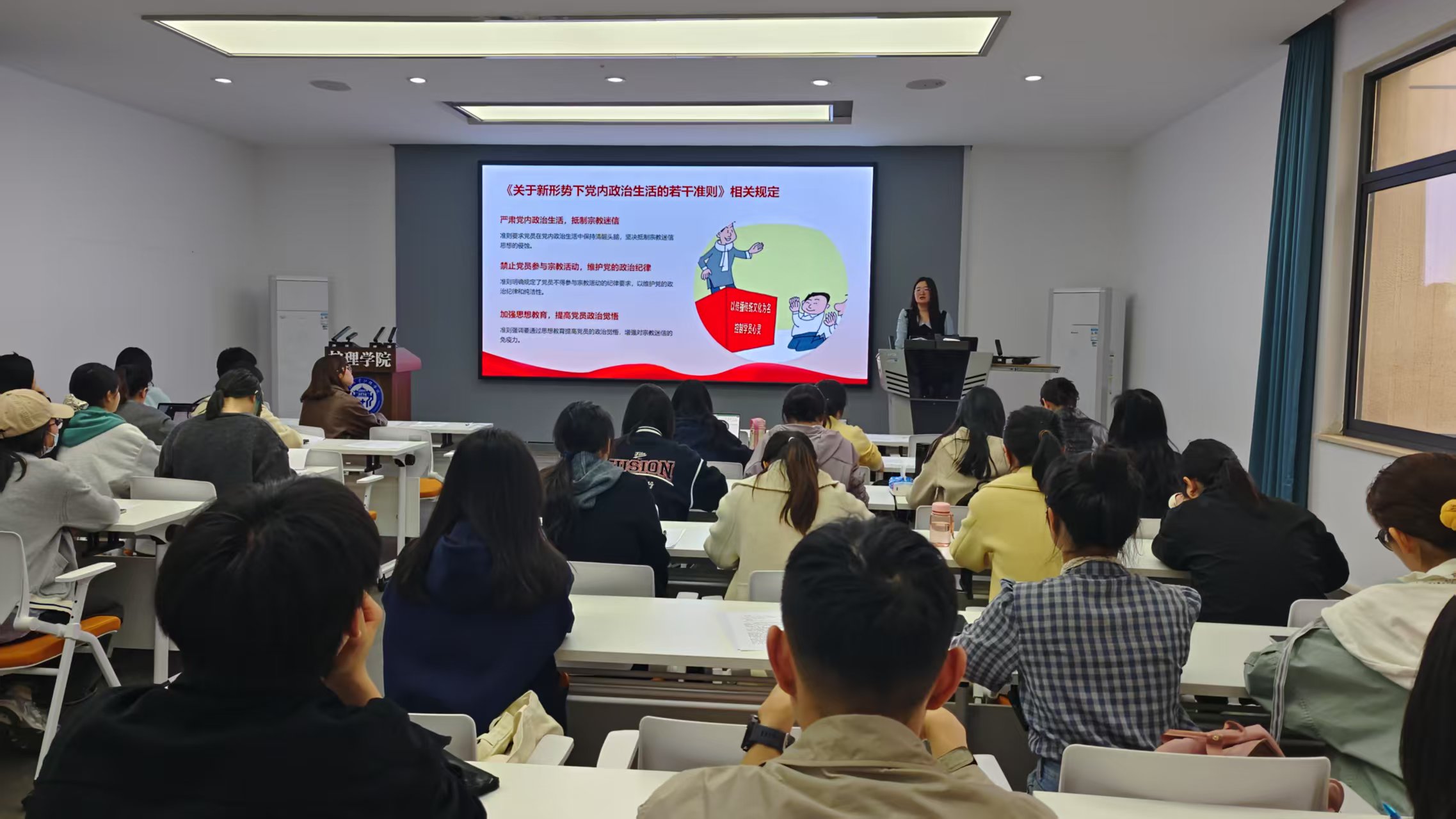 毛诗柔首先面向支部党员开展“共产党员不得信仰宗教”主题党课。她从党员信仰宗教问题的政策解读、现实表现、危害影响、坚定理想信念的重要性及强化党员意识五个方面展开深入剖析。会议强调,全体党员必须严守政治纪律,坚定马克思主义信仰,牢固树立唯物主义世界观,自觉抵制宗教渗透,确保思想纯洁性。与会党员结合工作实际展开讨论,进一步强化了政治意识和纪律观念。