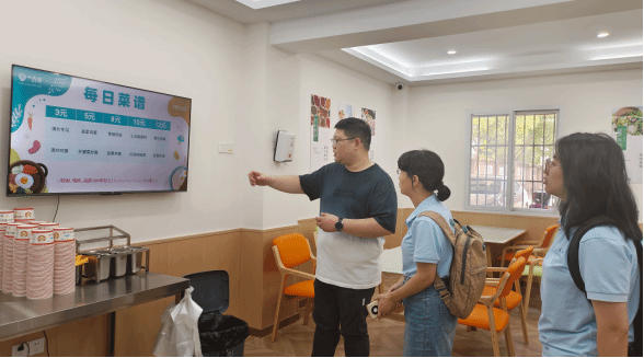 随后,同学们前往第二站——江汉里吉年颐悦中心工作人员细心讲解江汉里吉年颐养中心利用信息化智能化技术记录老年人的信息工作人员服务的时间和老年人需要的护理级别同时幸福食堂上设有中医保健中心为周边老年人提供针灸拔罐服务,提升老年人幸福感。
