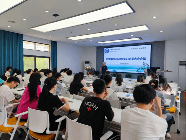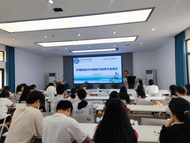 杨冰香老师为同学们介绍了2020级实习的安排、实习要求并强调了实习的重要性。杨院长希望同学可以摆正心态,深刻认识和理解实习的目的和重要意义,在工作岗位上尽快、主动融入集体,要文明礼貌、言语规范、仪态大方。实习期间与带教老师做好沟通,认真完成实习任务,珍惜实习机会,努力将学校学到的知识融入实习中,做到学有所获、学以致用。