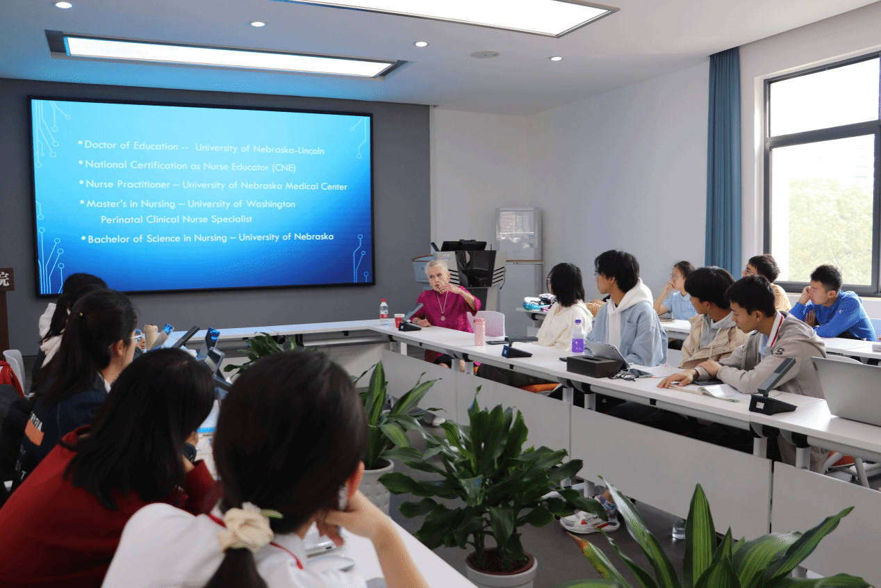 Sharon教授以“Being smart and being unique as a nurse”为主题进行分享。首先,Sharon教授对自己在护理领域长期的工作经验进行了简单介绍,其中提到自己在多种工作状态的尝试中寻找兴趣点的经历,以自身实例向同学们提出建议。随后,Sharon教授剖析当下护理领域就业现状,并讲述自己在不同国家地区从事护理实践工作的趣事与感悟,强调了护理人员专业技能和思维训练的重要性。另外,Sharon教授用风趣的语言举例自己在各地区收获的理念与思考,鼓励同学们勇于尝试与体验,发现护理领域的多种可能性。