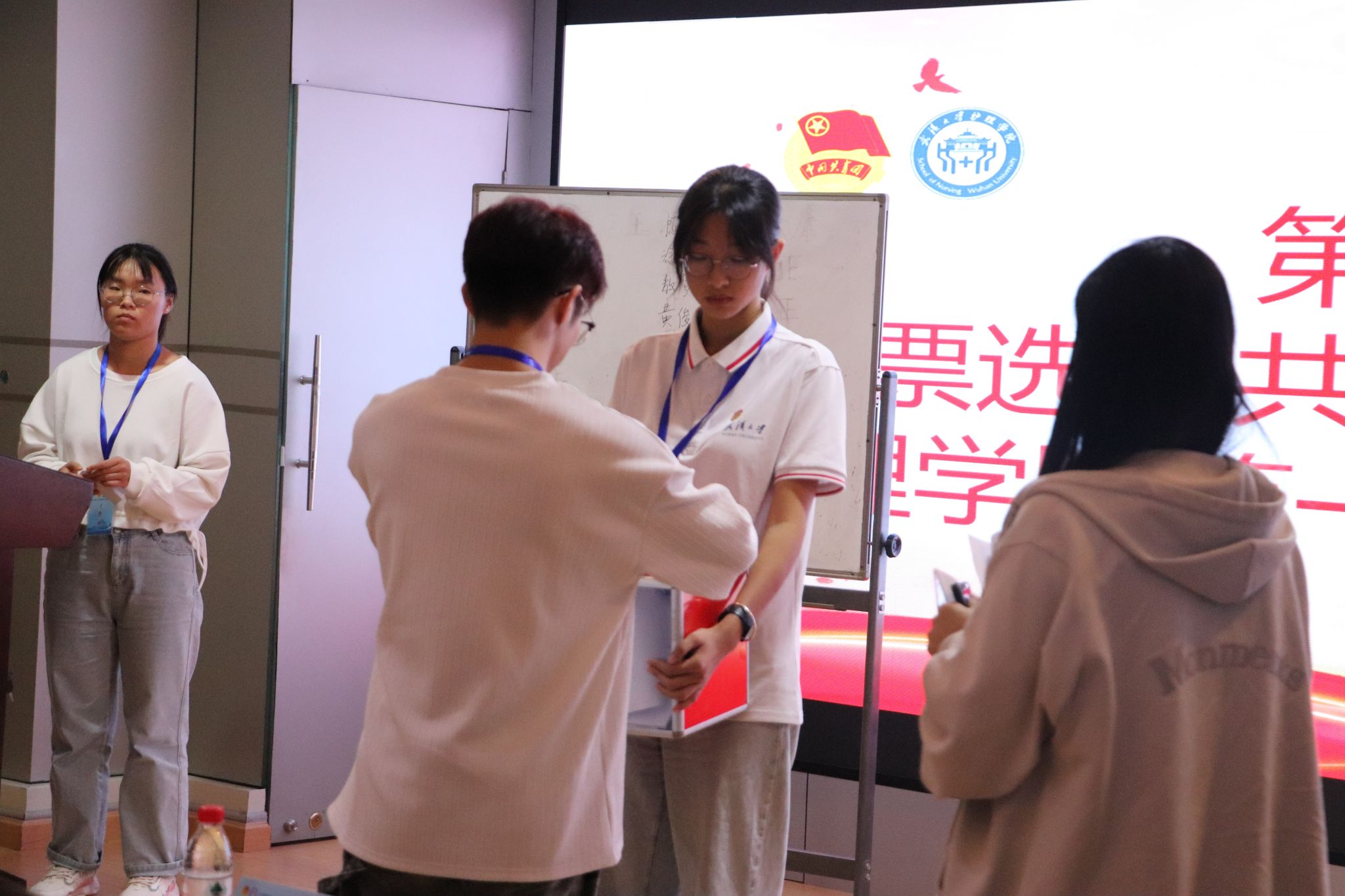 第一次代表大会总监票人、监票人、计票人名单(草案)》,代表分团审议委员候选人材料后,由大会主持人胡静怡同学主持投票环节,以无记名投票方式选举产生共青团17c