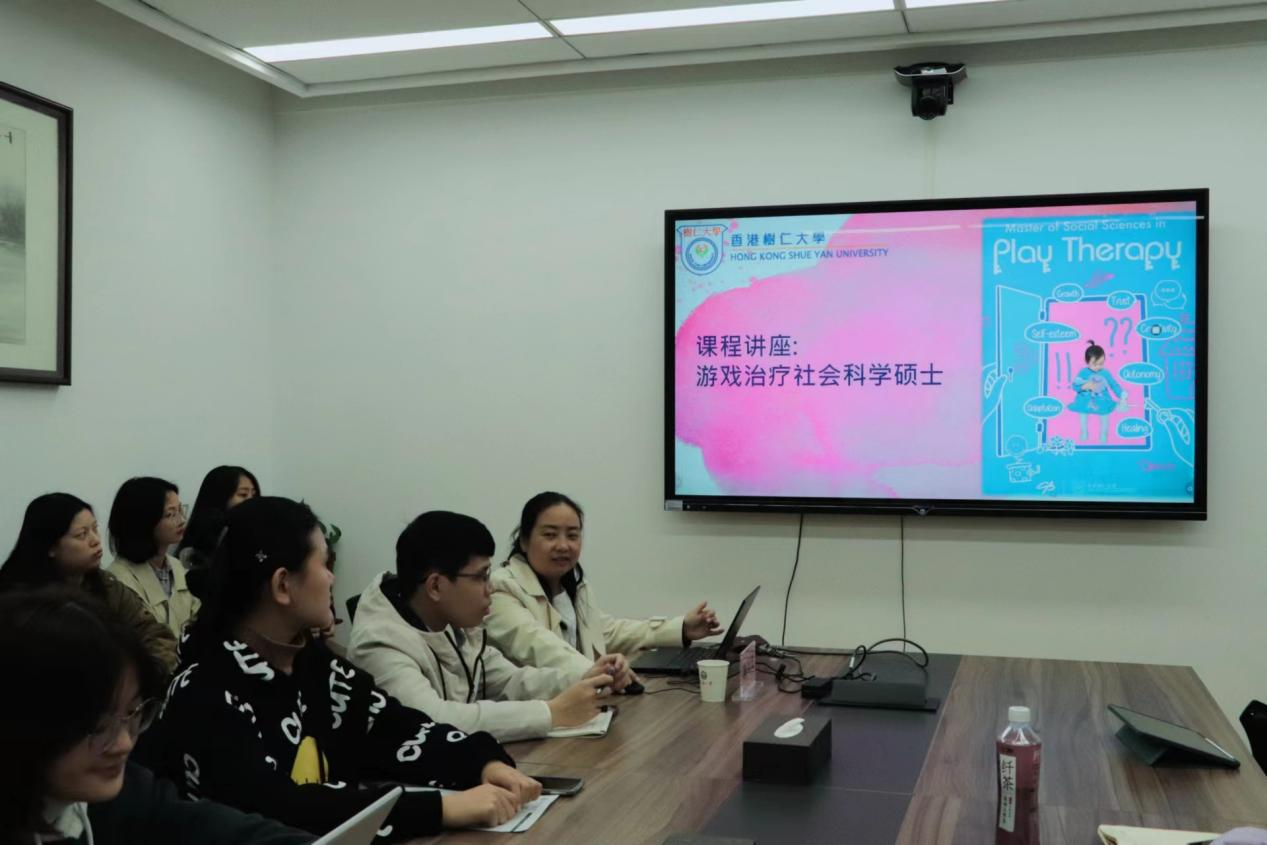 随后,周德慧老师重点解读了香港树仁大学开办的游戏治疗社会科学硕士项目。她提到,游戏是孩子的语言,为孩子提供了一种自我表达的方式和整理生活的机会。周老师用她曾经治疗过的一个小男孩为例,向同学们生动地讲解了“游戏治疗”这一新概念,拓宽了同学们的思路和视野。
