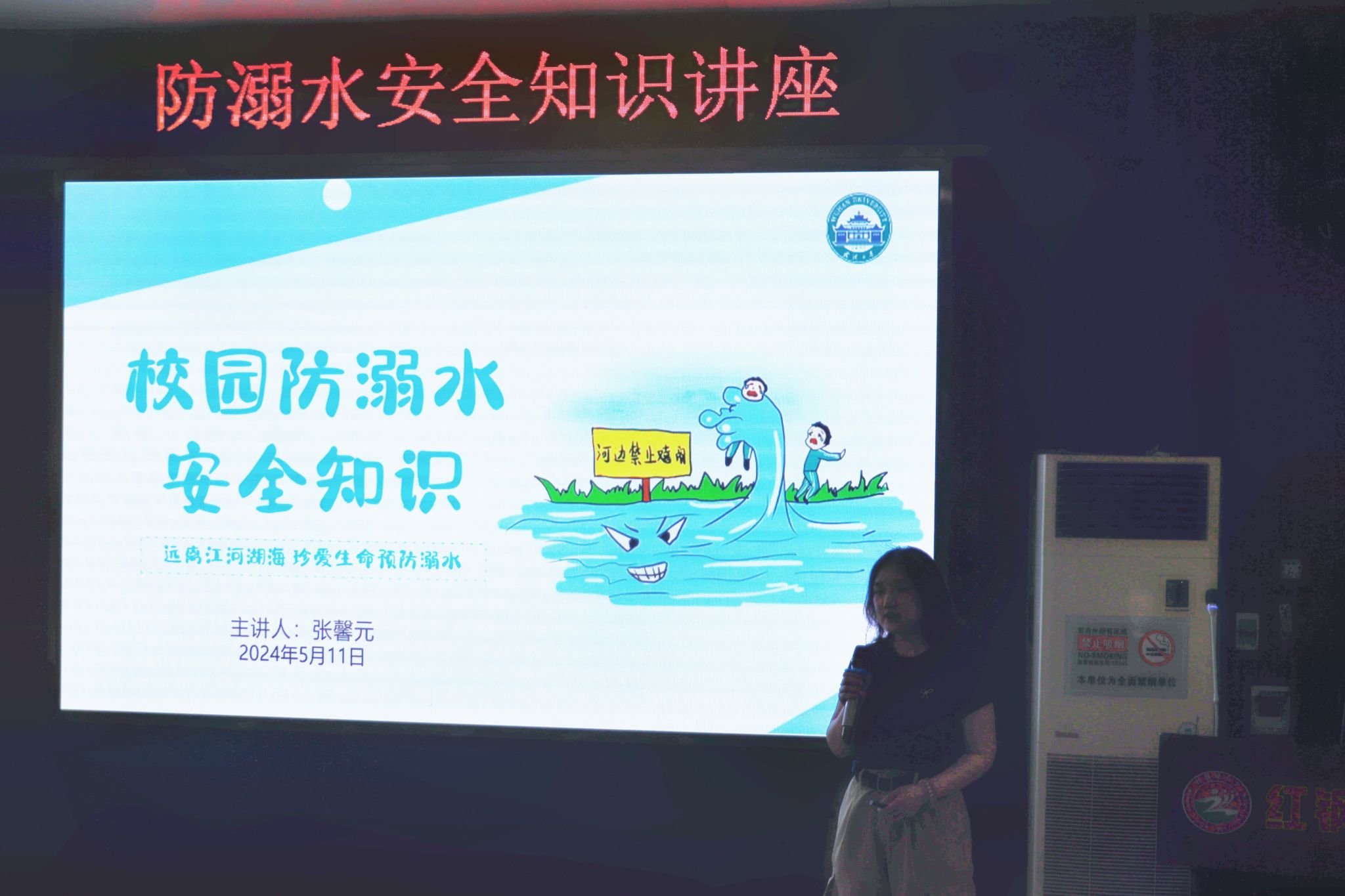 活动伊始,志愿者们以亲切的笑容和热情的问候,迅速拉近了与中学生们的距离。夏季是溺水事故的高发期,而青少年学生往往是其中的主要受害者。首先由主讲人张馨元同学围绕“防溺水”这一主题,通过生动的案例和实用的安全知识,向同学们普及了溺水事故的危害,让同学们深刻认识到防溺水的重要性。主讲人详细介绍了预防溺水的有效措施,包括不在无安全设施的水域游泳、不私自下水游泳、不在水边嬉戏打闹等。最后,主讲人还讲授了自救技巧,如遇到溺水情况,同学们应保持冷静、寻找漂浮物、大声呼救等。同学们的积极互动与全神贯注彰显着宣讲的良好效果。