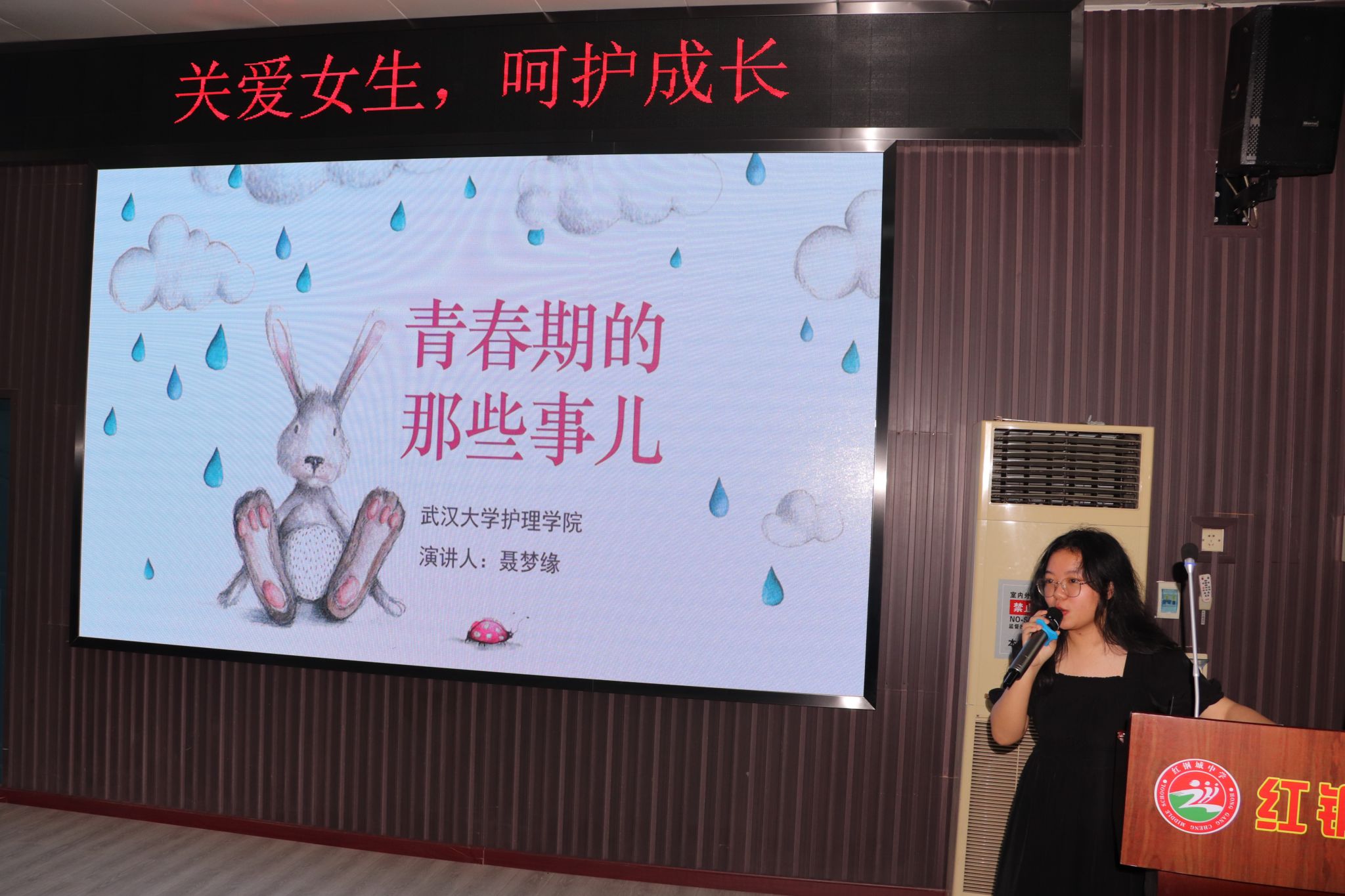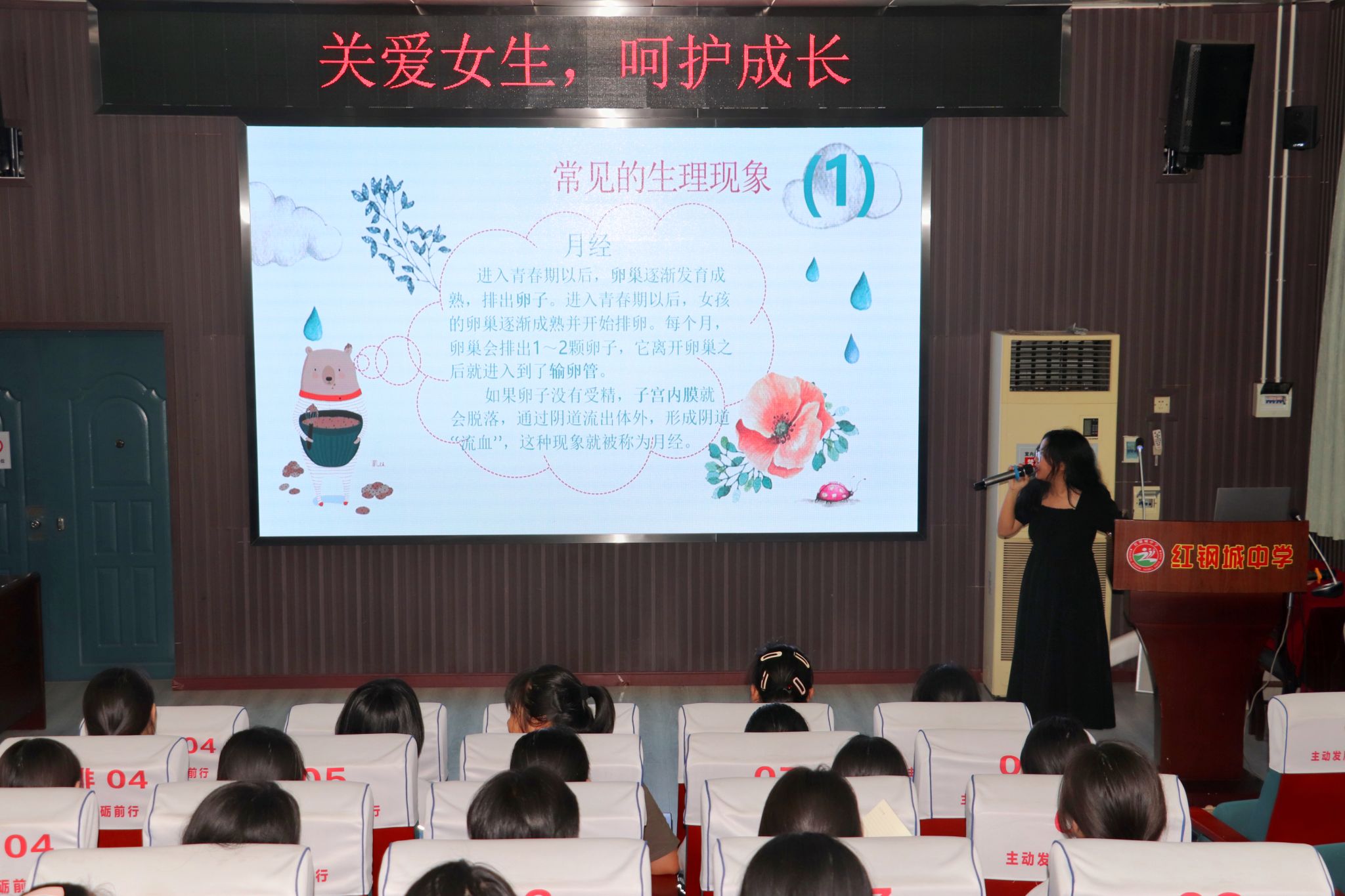 在性教育知识宣讲环节,主讲人聂梦缘同学用温柔而坚定的语气,向同学们讲述了青春期生理变化、心理支持知识以及预防性侵害的方法。在生理知识普及过程中,主讲人详细介绍了女性生殖系统的结构和功能,让女生们对自己的身体状况有了更深入的了解。同时,她还讲解了月经周期的相关知识,包括月经的形成原理、注意事项以及常见问题的处理方法,帮助女同学们更好地管理自己的身体。在情感与心理支持环节,主讲人探讨了女生在成长过程中可能遇到的情感问题和心理压力,并提供了适当的支持和建议。她鼓励女生与家人、朋友和老师分享自己的感受和困惑,寻求帮助和支持。最后,在自我保护策略部分,主讲人向同学们传达了如何拒绝不合适的身体接触或要求,明确个人边界和价值观等相关内容。同时,主讲人还提供了应对性骚扰或性侵犯的应急措施和方法,指导女生们在紧急情况下如何保护自己。现场气氛温馨而热烈,同学们纷纷表示受益匪浅。