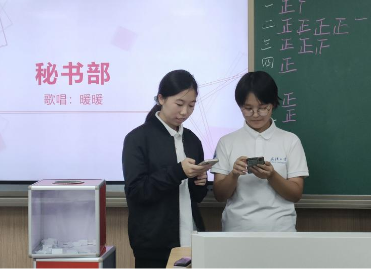 既有舞蹈视觉盛宴,自来歌声洋洋盈耳。在最后一轮的表演中,秘书处曾佳仪和王钰琪带来的一首《暖暖》,甜美的嗓音,柔和的韵律让我们都沉醉其中。