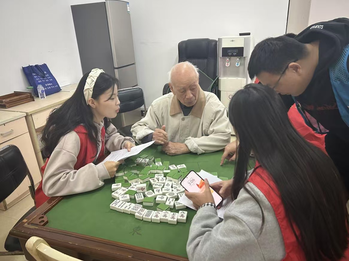 (志愿者对老人进行记忆力,意识状况和定向力的评估)