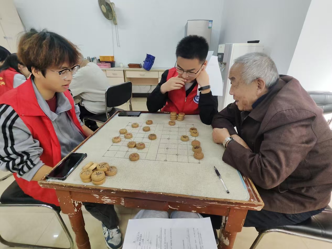 (志愿者陪老人下象棋)
