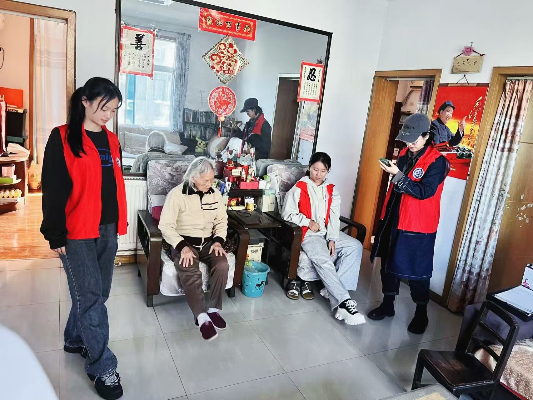 培训结束后,同学们分组进行了入户评估。他们带着记录本和评估工具,走进了老年人的家中,耐心细致地为他们进行健康评估,并与他们进行了深入的交流。在评估过程中,同学们不仅关注老人的身体健康状况,还询问了他们的生活习惯、兴趣爱好等,让老人感受到了来自17c 天使之翼志愿服务队的温暖和关怀。