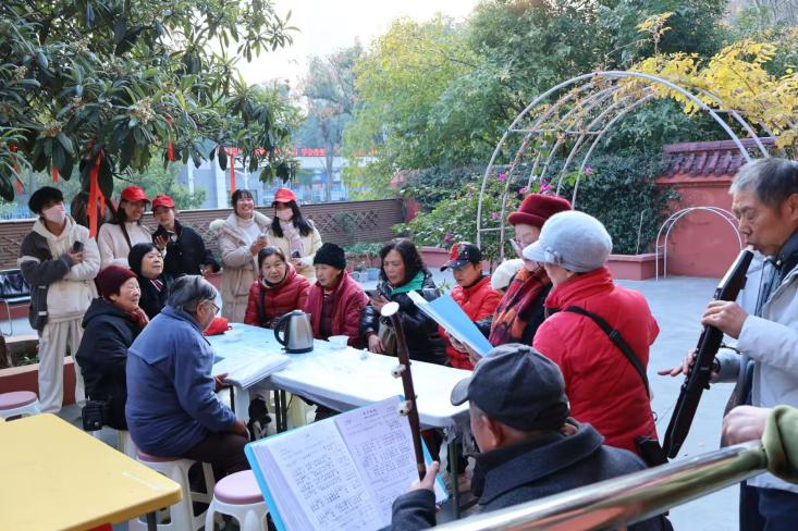 饭后娱乐环节两位精神矍铄的爷爷站了出来,他们一人拉二胡一人电吹管,配合默契,演奏起了悠扬的乐曲。在音乐的伴奏下,大家一起合唱了《军中绿花》《祝福祖国》《走进新时代》。队员们毫不扫兴,不会唱的当场学习,爷爷奶奶们更是中气十足,用嘹亮的歌声表达对祖国的热爱。临别前,大家互道祝福冬至快乐,愿彼此的生活如这热腾腾的饺子一般,饱满而甜蜜。