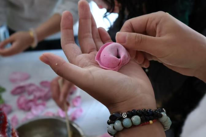 活动伊始,活动中心已经准备好了面团和肉馅,队员们洗手戴口罩后便加入了包饺子阵营。奶奶们给队员们传授指导各种包饺子技能,包出的饺子有的圆滚可爱,有的花样百出、造型奇特。
