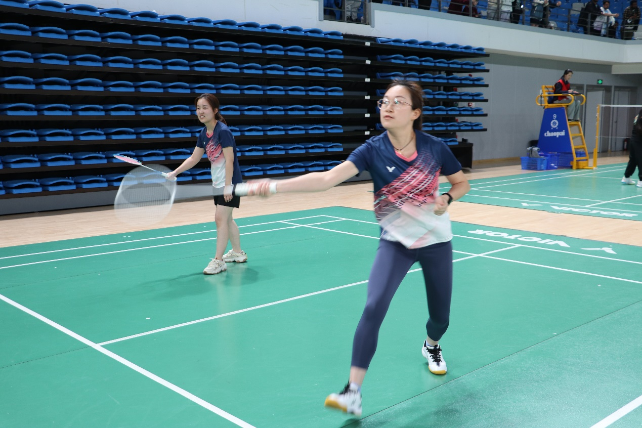 4月9日,本次羽毛球大赛进入白热化阶段。经过一天的激烈角逐,场内依旧热情高涨。清晨,运动员们已在赛场内演绎一幕幕精彩瞬间。胜不骄,败不馁,坚持就是胜利!挺进第二轮的女单郭静静同学、混双陈建飞、刘珺同学虽止步于第二轮,但依旧取得了32强、16强的好成绩。