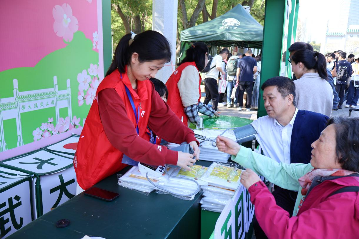 除健康服务外,社团成员们还充当起校园“导游”,为来往游客指引方向,详细介绍校园历史、建筑特色和著名景点,让游客们在欣赏樱花美景的同时,深入感受武大深厚的文化底蕴。他们热情周到的服务,赢得了游客们的一致赞誉,不少游客对志愿者的帮助表达了诚挚的感谢。