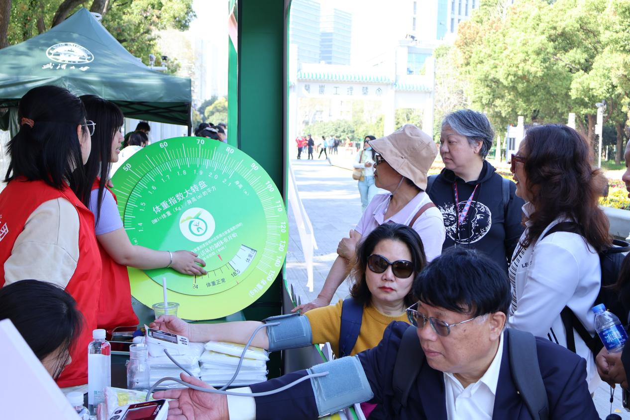 在服务站点,社团开展了一系列健康主题活动。免费测血压区域,成员们耐心地为游客测量血压,并依据测量结果给予专业的健康建议。膳食宝塔介绍与BMI转盘互动环节吸引了众多游客驻足,成员们通过生动的讲解和现场演示,帮助游客深入了解健康饮食和合理体重管理的重要性,不少游客纷纷表示受益匪浅。与此同时,成员们还积极开展健康宣教,传播日常健康知识,提升游客们的健康意识。