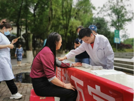 前往健康义诊地点的居民大多为老年人。社区老年人对于自身健康更为关注,路过的时候都会测量血压,并且留下来听我们开展的“心肺复苏急救小课堂”。每一位志愿者都能够有条不紊的为居民完成血压的测量。测量完成后也会和老人们聊聊天,了解老人们平时血压的测量结果,是否持续用药和定期监测血压等。一位负责测量血压的志愿者分享到:“我认为此次社区义诊活动非常有意义,将我们所学知识服务于社区居民。一部分老年人会因为血压测量结果并不理想而十分担忧,我们也会提供健康宣教,告知其需要按时服药,定期检查。服务过程也能够促进我们对前期知识进行运用与理解,希望在下一次社区实践中能够更好的服务社区。”