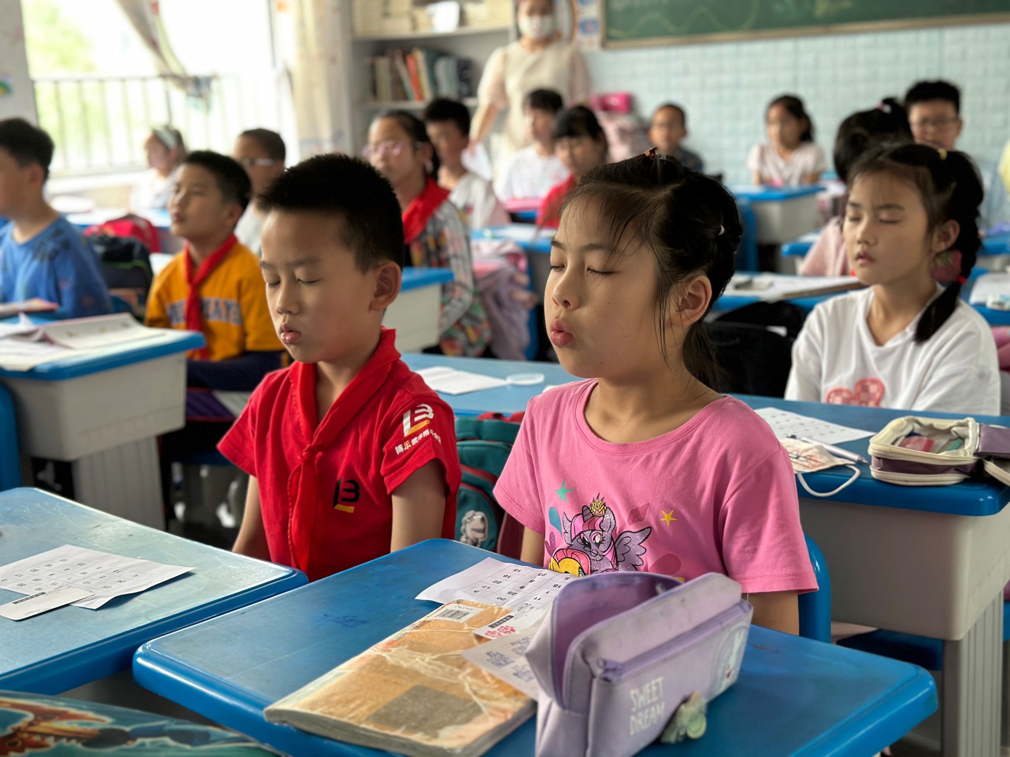 评估后,针对进入学习前难以静心的情况,黄蕾卿同学向大家教授去除干扰、冥想、深呼吸三种方法,并带领三(4)班的同学们进行了三分半左右的呼吸冥想,同学们争先恐后地分享冥想后有助于专注的积极感受。