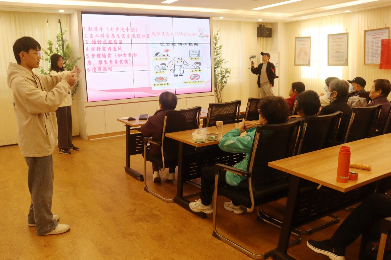 学生志愿者满怀热情,开展了一场以“搭建健康桥梁,守护社区健康”为主题的流感预防等常见疾病知识科普与义诊志愿服务活动,不仅为社区的老人们测量了血压血糖,还为他们带去了一场内容丰富、实用的健康知识科普讲座。