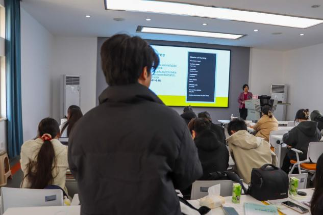 林凤芝首先简单介绍自己的经历,以求学和工作的经历分享拉近了与同学们的距离。她有着在中国与澳洲双重求学与工作的经历,对于中国与澳洲的护理教学工作和临床情况十分了解。她重点向同学们讲解了弗林德斯大学护理专业硕士、博士研读的情况,包含了学校开展的课程、同学与导师的关系、实习情况与就业导向等。除此之外,她还向同学们解读了澳洲的留学生政策,提到了相关奖学金制度与补贴。最后,她谈到了澳洲护士职业资格证的考取与澳洲留学的语言难点,希望同学们在看到留学广阔前景的同时也要正视其中的难点,及早规划,在大学学习中做好当下,稳扎稳打,为将来的计划打下良好的基础。