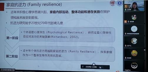 王安妮老师的演讲主题为《居家失能老人社区嵌入式支持模式探索-基于家庭抗逆力视角》。演讲中提到随着我国老龄化社会进程不断加快,至2030年失能老人将高达916217c