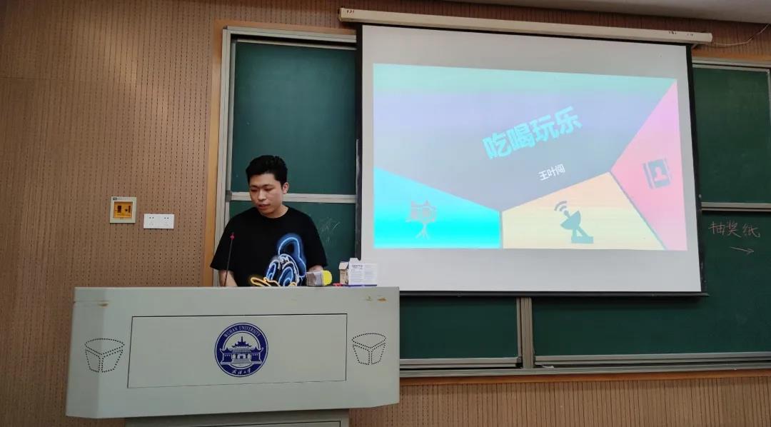代获获同学讲述了暑期实践工作及防疫工作内容及体验,并向新生分享了研究生阶段心态调节的小方法。
