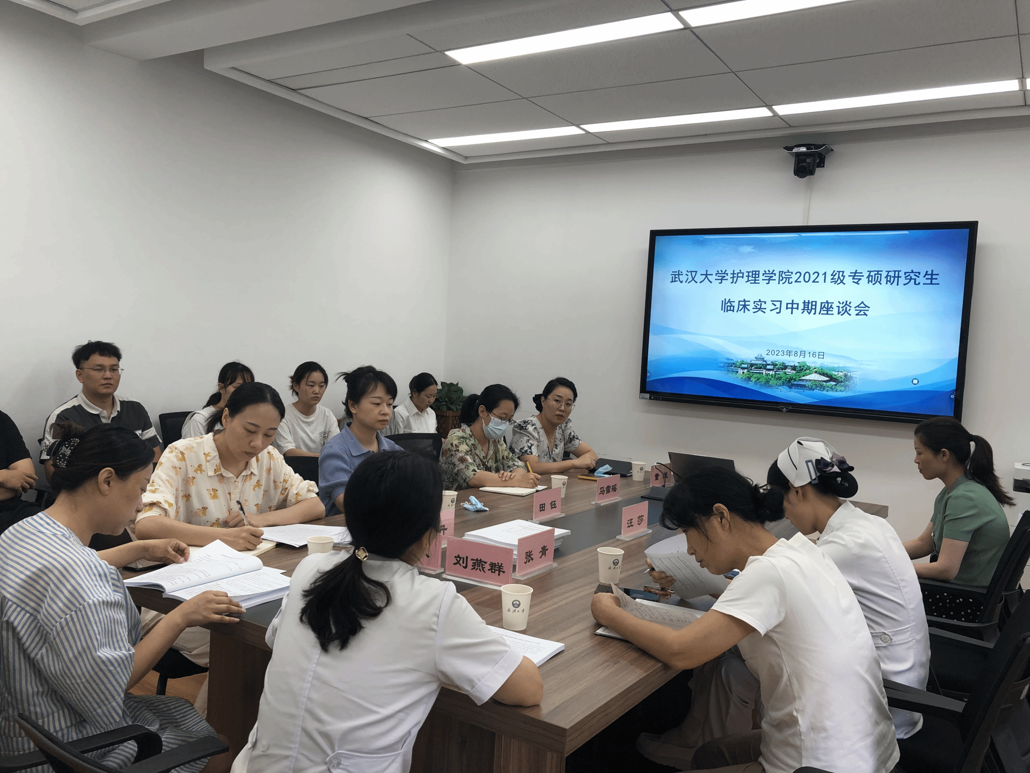导师代表张青老师、部分临床科室护士长和全体2021级护理专硕实习生参加本次座谈会。