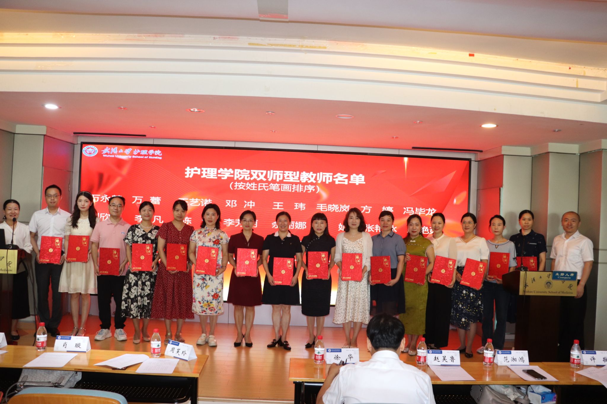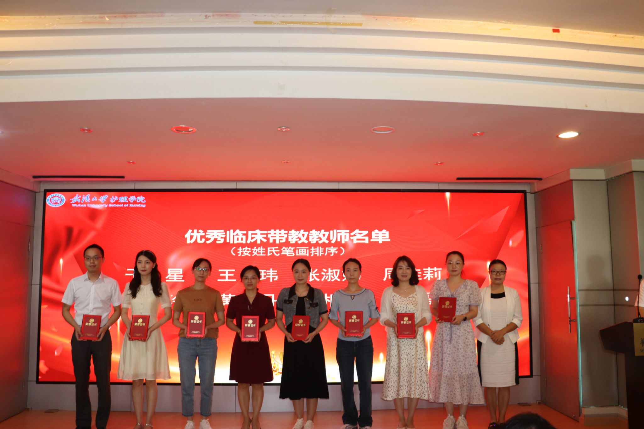 双师型教师和兼职导师颁发聘书,并表彰了一批优秀教师,包括优秀学士学位论文指导教师、优秀临床带教教师、优秀研究生指导教师、博士申报优秀贡献教师、全国青年护理教师临床技能竞赛优秀指导教师和教学成果突出贡献教师。
