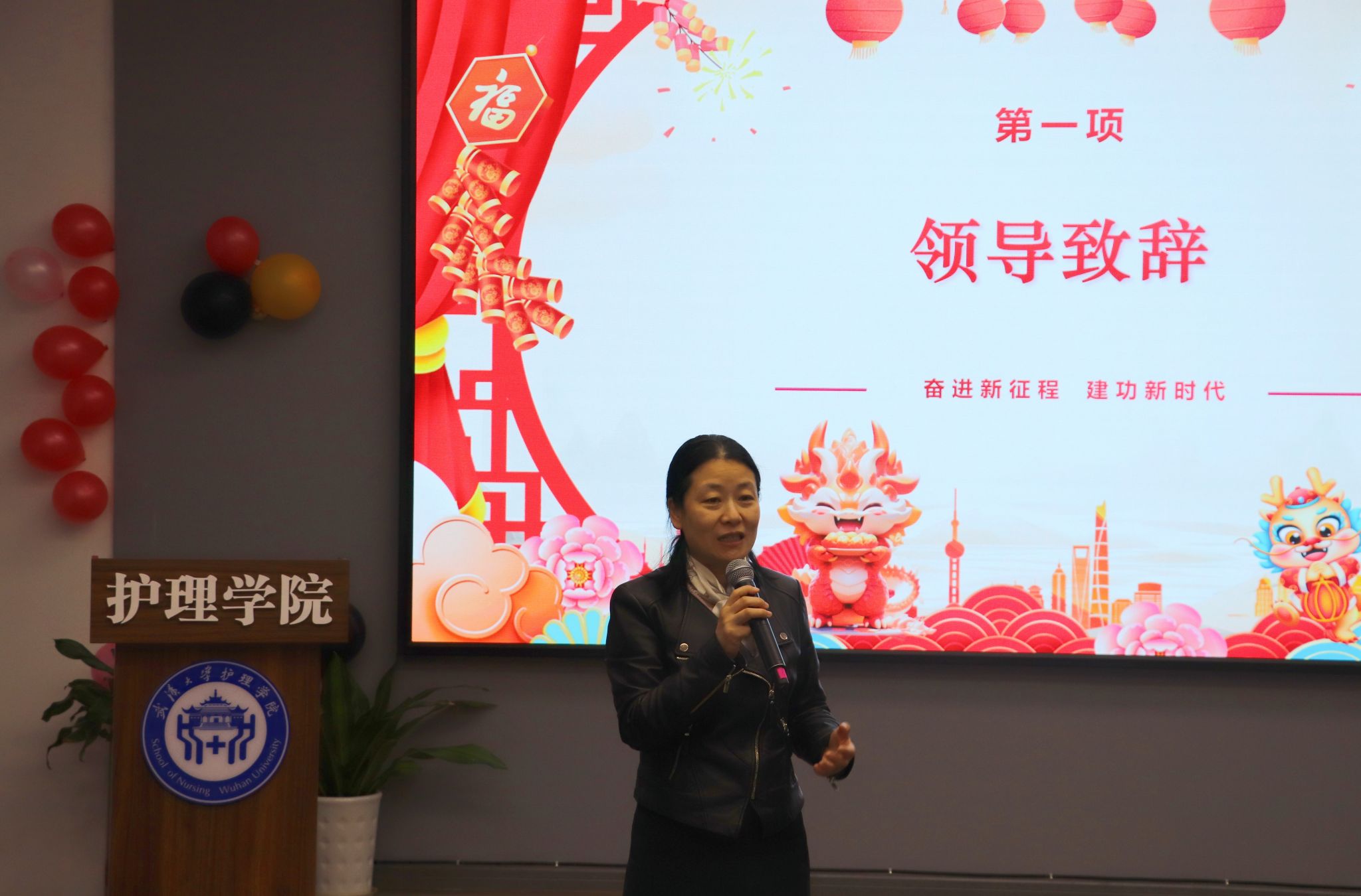 院长周芙玲致辞,回顾了2023年学院取得的成绩与荣誉,感谢全体教师的无私奉献与辛勤耕耘。