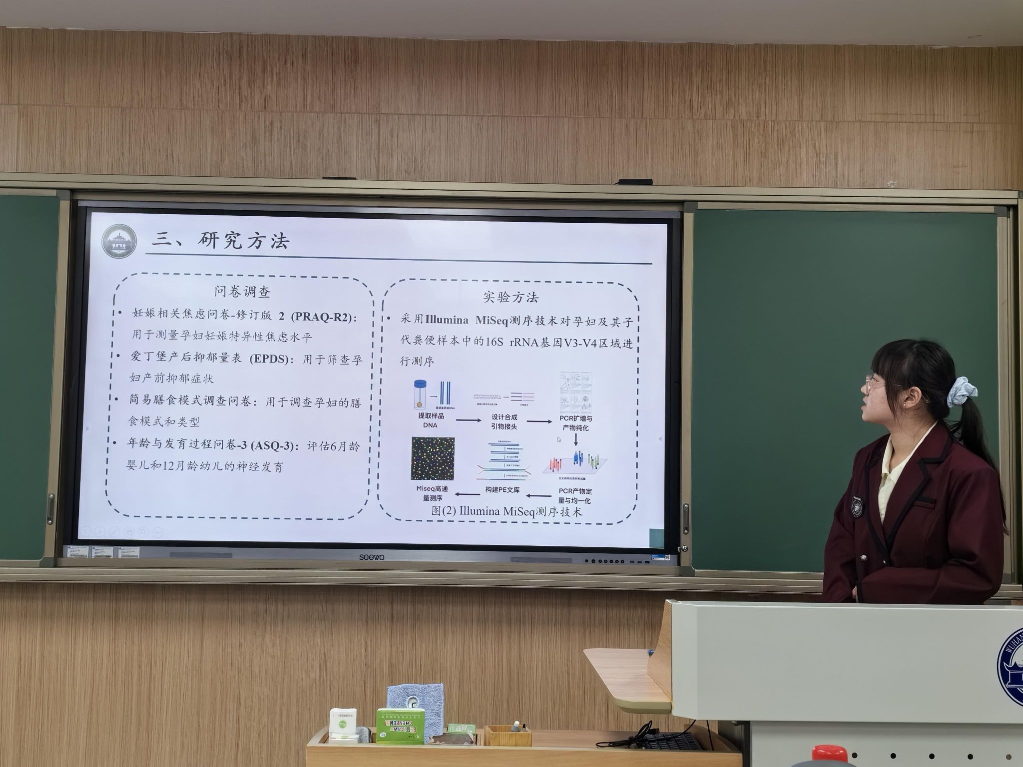 为了保障此次答辩的高效运行,各项目组提前进行答辩顺序抽签、答辩PPT的挎贝,中期检查报告交给评委审阅,让评委们充分了解项目内容,更好地提出问题与建议。答辩现场,各项目答辩人从本组项目的研究背景、目的、意义、内容、创新点与阶段性成果等各方面进行分析阐述,随后三位评委老师针对项目的科学性、可行性、创新点、实践结果、项目价值等角度,进行了提问与沟通,并对项目后续发展提出了宝贵意见,强调一定要抓住项目关键点、掌握准确参数、脚踏实地研究。评审专家充分肯定了各项目组答辩人展现的积极进取的精神风貌、求知若渴的谦虚态度,赞扬了项目取得的创新性、阶段性成果,尤其对运用人工智能技术、大数据等交叉学科的新型技术手段表示充分的肯定与鼓励。
