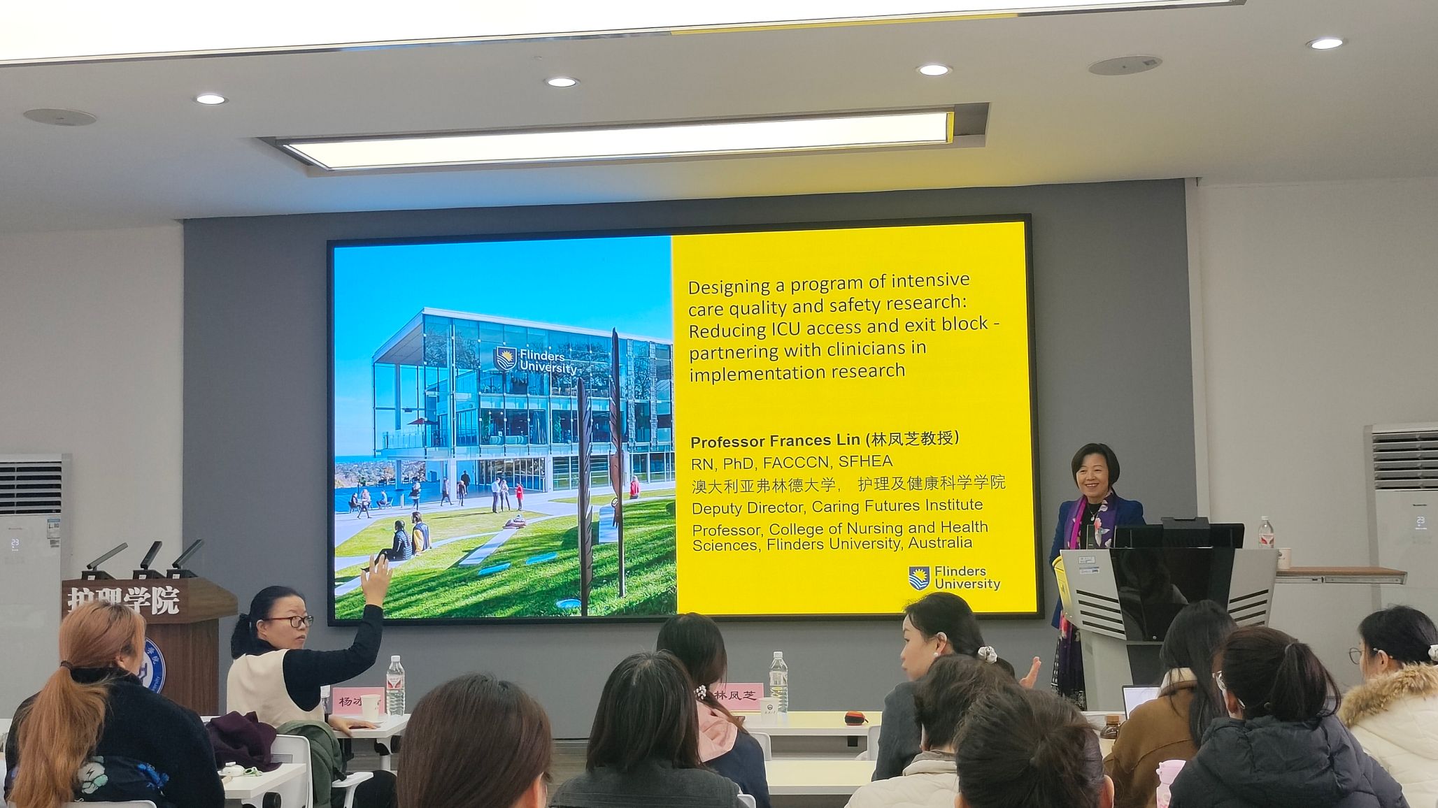 林凤芝开展了一系列学术交流活动。在“珞珈护理本科生沙龙”为学生详细介绍了澳大利亚弗林德斯大学的护理教育、硕士博士项目。作为珞珈护理讲坛的专家,分享了如何设计重症监护质量和安全研究项目。同时还为17c