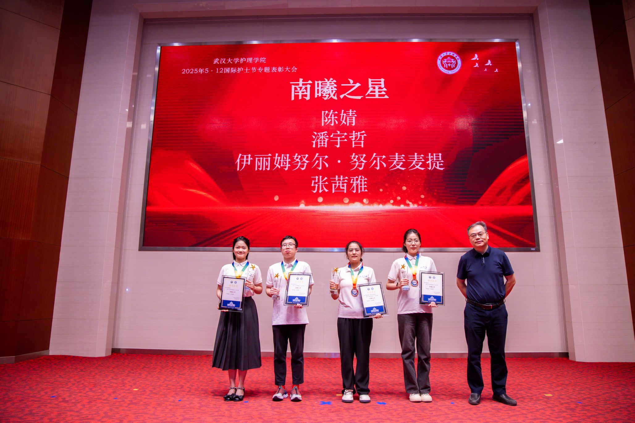 开展了第一届“南曦之星”榜样人物评选工作。表彰大会现场,副院长杨冰香、刘燕群分别为陈婧、潘宇哲、伊丽姆努尔·努尔麦麦提、张茜雅四位南曦之星致颁奖词,医学部党工委副书记李天亮为第一届“南曦之星”们颁奖。