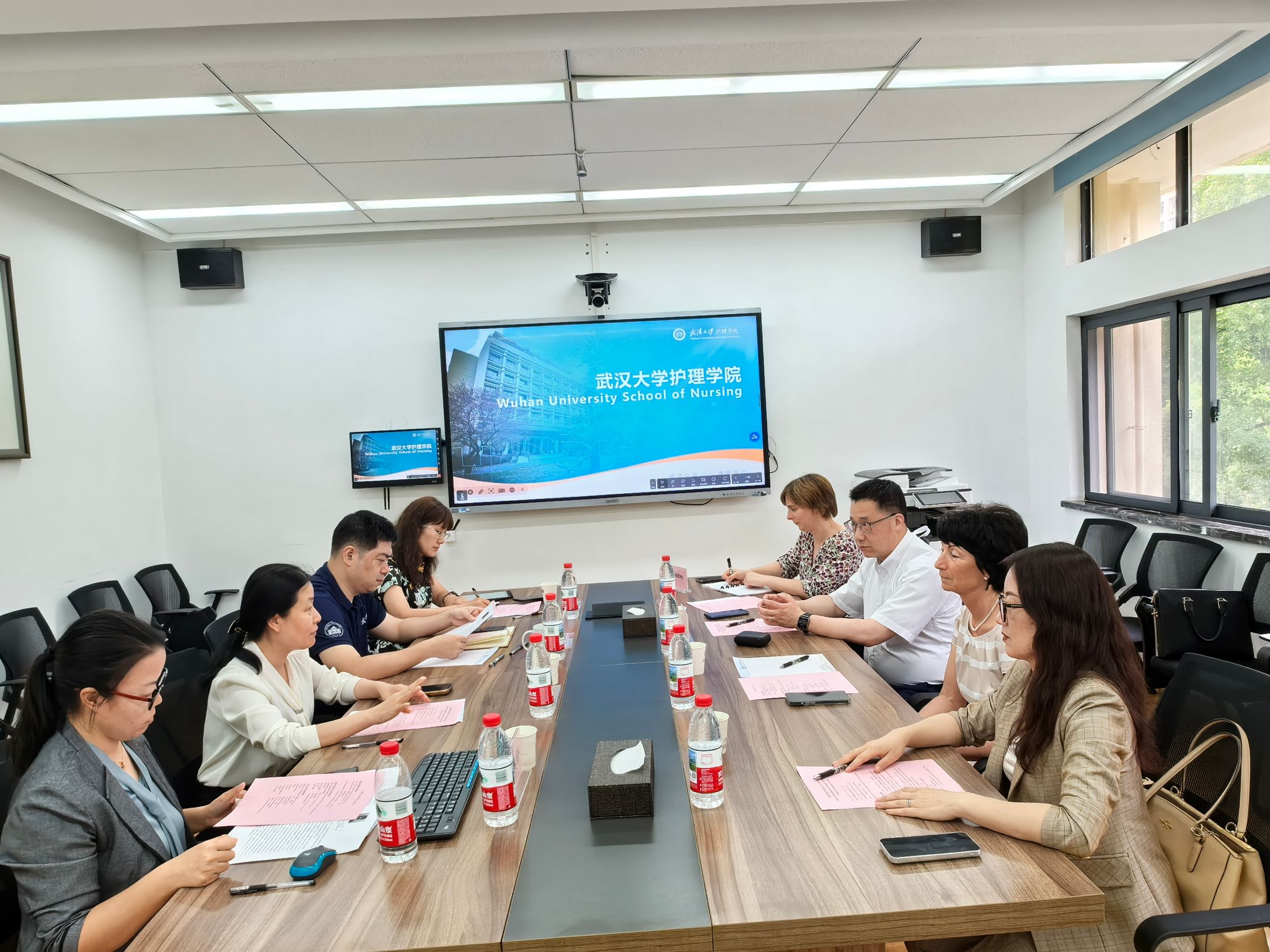 的发展历程、人才培养、科学研究成果及国际交流情况。德国宝隆护理学校校长Ms. Latzkow分享了德国护士双元制职业教育体系的特点、职业发展方向,同时介绍了宝隆护理学校的历史与办学特色。双方围绕学生培养模式及未来发展方向进行了深入探讨,希望在既有合作基础上,进一步推进学生互换交流项目,深化双方在护理教育领域的合作。