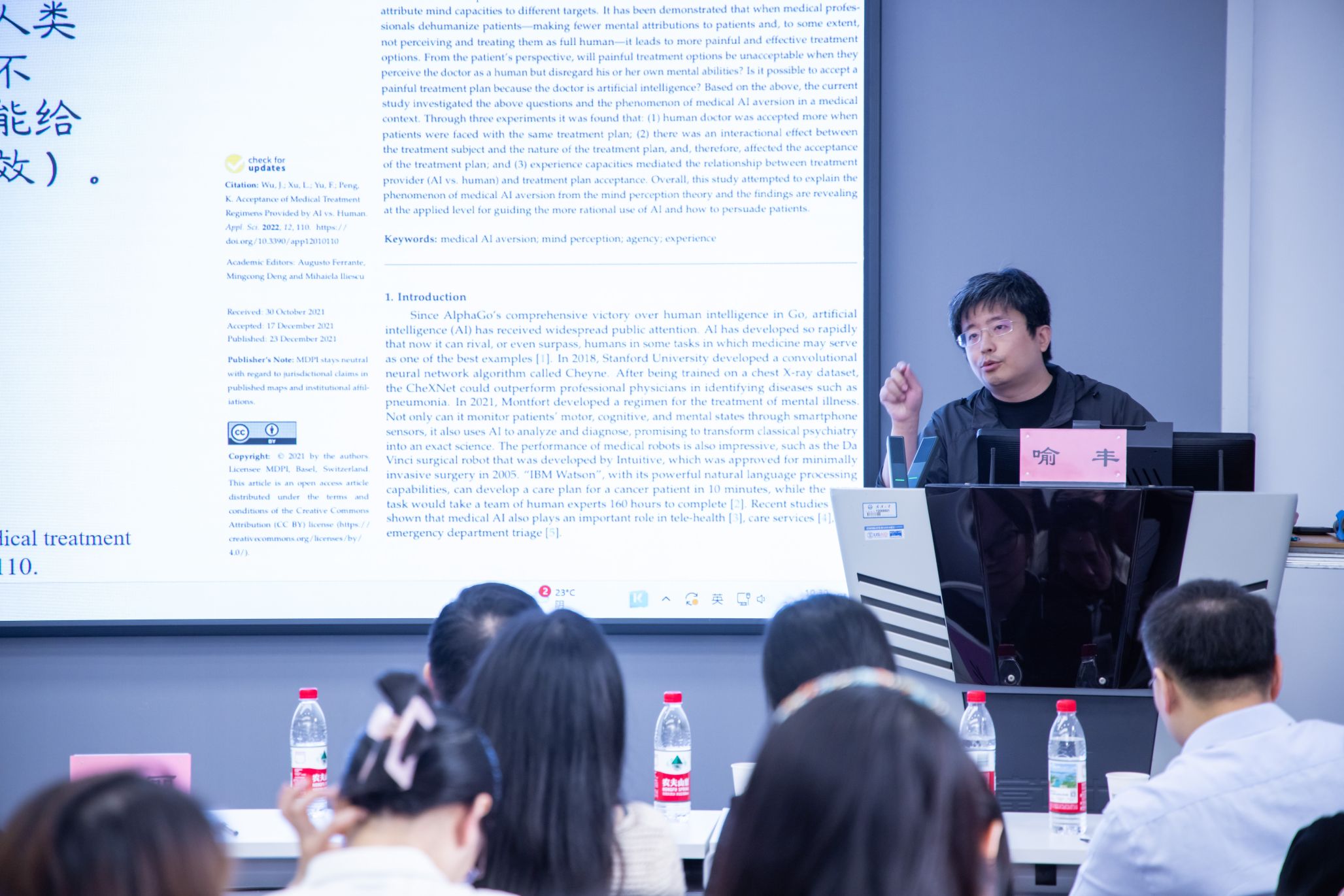 喻丰就《人工智能的道德心理学》这一主题展开报告,指出公众对人工智能的接受与排斥源于其“非人性”特征,如缺乏道德责任与能动性。他通过大量研究分析人们在面对AI决策时的认知偏差与道德冷漠现象,认为仅依赖规则设定难以实现有效治理。他倡导构建“有美德的人工智能”,推动心理学回归人本关怀,促进AI伦理与人类价值的深度融合。