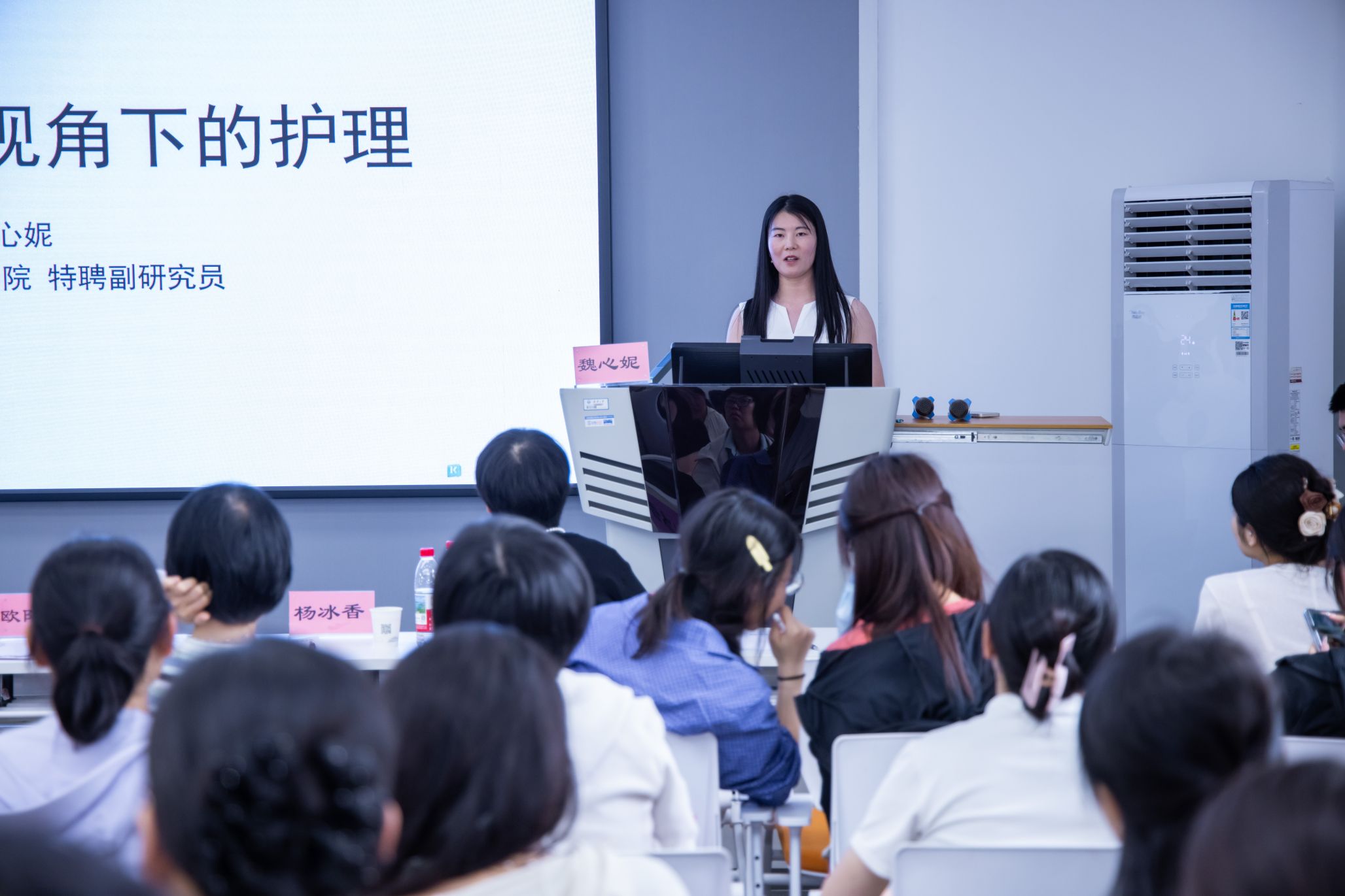 魏心妮特聘副研究员带来《积极心理学视角下的护理》的主题报告,她首先讲述了当前护理人员配置不足、从事护理工作意愿不足等现状。基于社会感知理论,提出了存在以上现状的可能原因。她还从积极心理学的角度,提出了从传统护理转向对护理人员关爱的计划,强调护士在工作中除了关心病人的需要,还需要更多考虑自身的需求,关注生活意义和生活目标。
