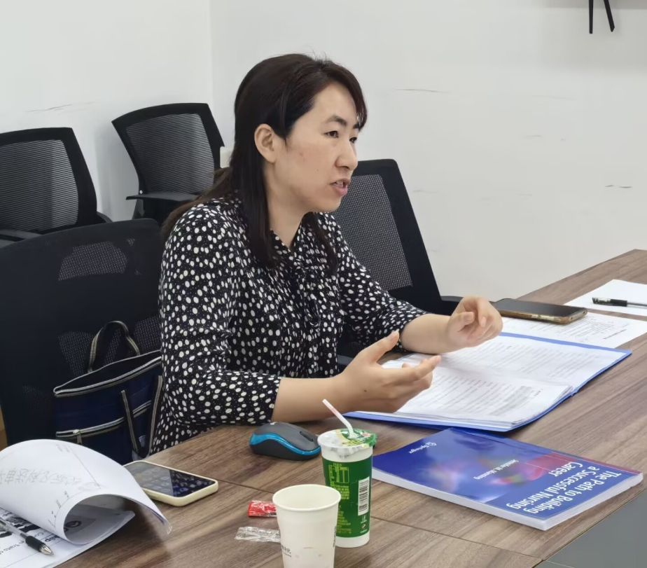随后,课程秘书许欣老师对课程的整体设计进行了详细汇报。她围绕课程教学目标、主要内容、教学团队构成及考核方式等方面进行了全面介绍。课程内容涵盖护理职业认知、护理生涯发展、个人发展规划等多个模块,教学团队由具有丰富临床和教学经验的中英双语师资构成,课程评估则结合过程性评价与终结性考核,力求科学合理、精准有效。 会议最后,教学团队成员李薇薇、戈欣、周佳莉与张春华老师分别进行了试讲展示,充分体现了教学内容的专业性与国际化水平。与会专家对试讲内容进行了深入点评,提出了建设性意见,进一步优化课程设计与实施策略。