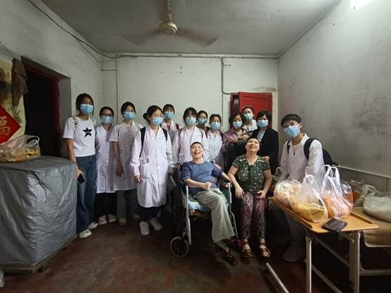 5月17日下午,余立平老师带领团队成员前往水果湖街青鱼嘴社区一片拆迁后的居民区,看望一对智力障碍姐妹和她们年事已高的母亲。在给予人文关怀和医疗支持之余,同学们按照课程所学对社区环境、支持系统等进行了评估。