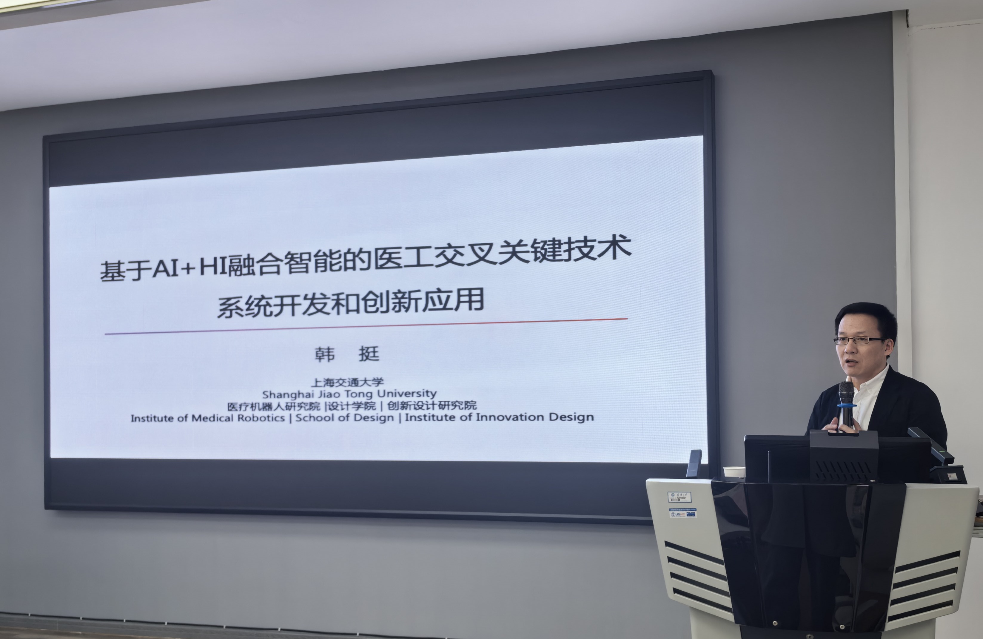 座谈会伊始,周芙玲对韩挺的到访表示热烈欢迎。随后,韩挺以“AI+HI融合智能的医工交叉关键技术系统开发与创新应用”为主题展开专题演讲。演讲中,韩挺教授提出“以健康问题为导向,用AI技术筑支撑”的医工交叉发展理念,他以面神经损伤、前庭功能障碍患者诊治为例详细阐述了从健康问题发现到AI系统设计开发,再到临床创新应用的完整实践路径。此外,韩挺教授还分享了基于AI多学科融合的生育智能服务体系构建,介绍了就诊体验数字化、平衡能力数字化及“记忆-运动”数字化等领域的创新实践,其前沿观点为在场师生拓展了医工交叉领域的研究视野。