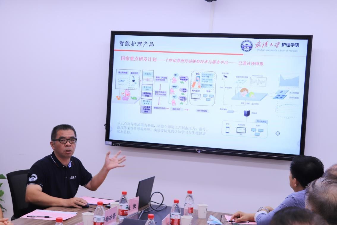 发展历史及科研工作进行汇报,主要从学院建立基本情况、导师建立队伍、护理科研体系、科学研究中心、国际交流平台等方面介绍了学院整体发展情况及对未来的展望。钱俊教授就智慧护理工程进行了汇报,重点介绍了智慧护理机器人、智能仿真实验用机器人、智能护理产品、现代家用护理产品的改造以及相关研究基础。