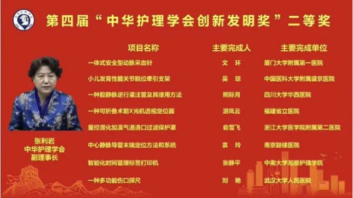 中华护理学会自2016年起设立“中华护理学会创新发明奖”,是中华护理学会科技奖两大子奖项之一,该奖项每两年评选一次,旨在表彰为护理事业创新发明中做出突出贡献的护理工作者,充分调动护理工作者的积极性和创造性,深耕护理专业,促进我国护理学科的发展。该奖项是目前国内护理领域最具权威的科技奖项之一。