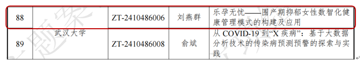 刘燕群团队申报的“乐孕无忧——围产期抑郁女性数智化健康管理模式的构建及应用”项目成功入选“健康中国”主题案例。